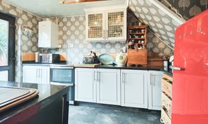 The heart of this home is its impressive full-length open-plan lounge/dining room, where contemporary oak-effect laminate flooring flows throughout and French doors frame views of the south-facing garden beyond. A cosy flame-effect ceramic stove creates an inviting focal point, perfect for cosy Lancashire evenings. This is a room designed for modern family life—spacious enough for entertaining, intimate enough for quiet Sunday mornings with the papers.