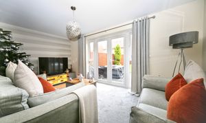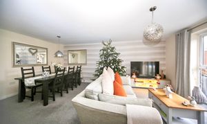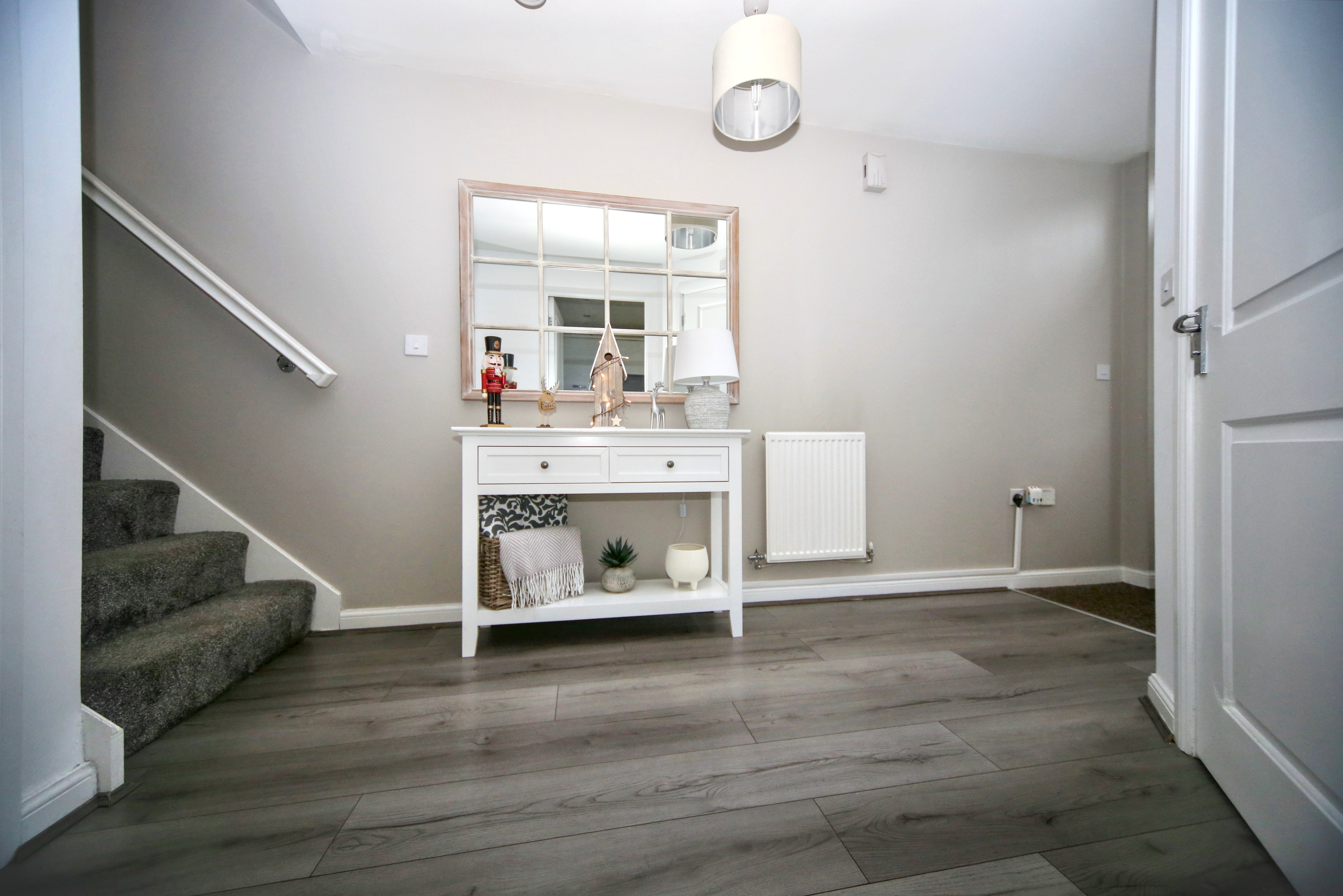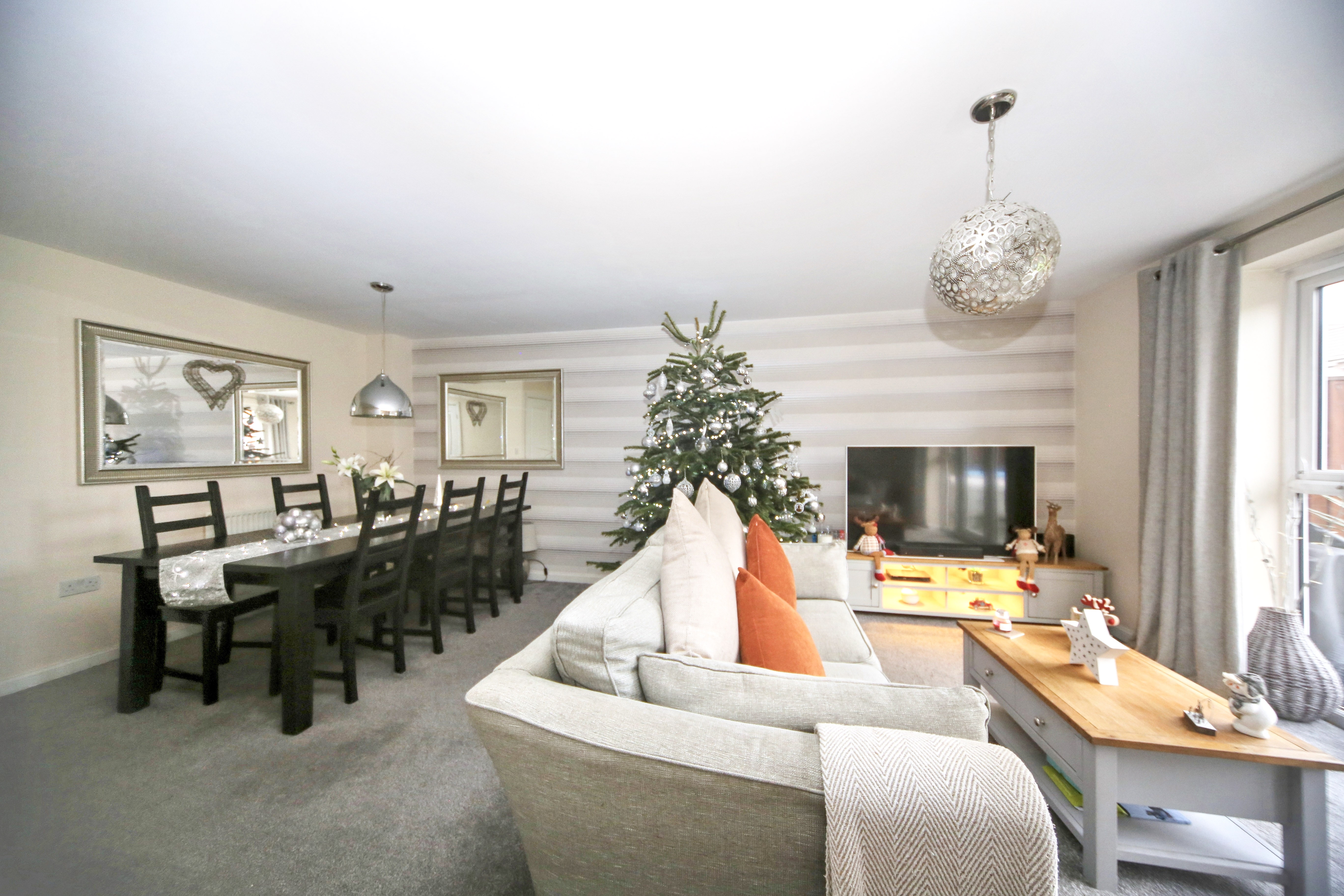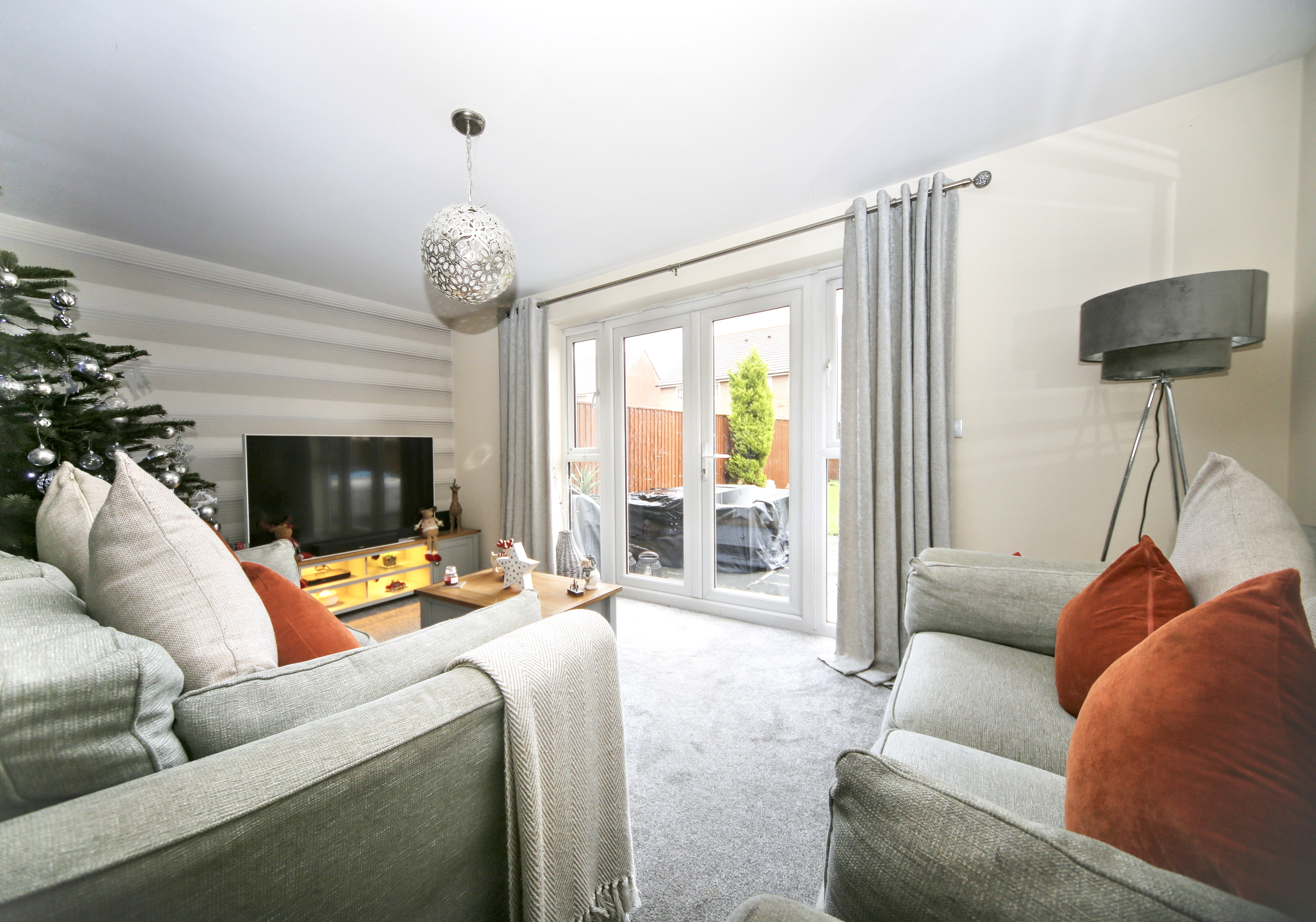 The property benefits from a double driveway and a bright, generously sized hallway that leads to a convenient downstairs WC. The open-plan lounge and dining area creates a wonderful setting for everyday family life and entertaining alike, featuring excellent storage options and a warm, airy atmosphere.