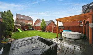 A particular highlight is the impressive rear garden. Thoughtfully designed for both relaxation and socialising, it includes a stylish pergola, Indian stone paving, and a decking area; ideal for outdoor dining throughout the warmer months.