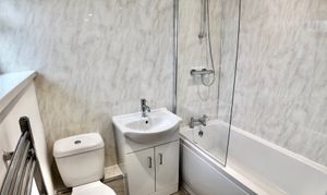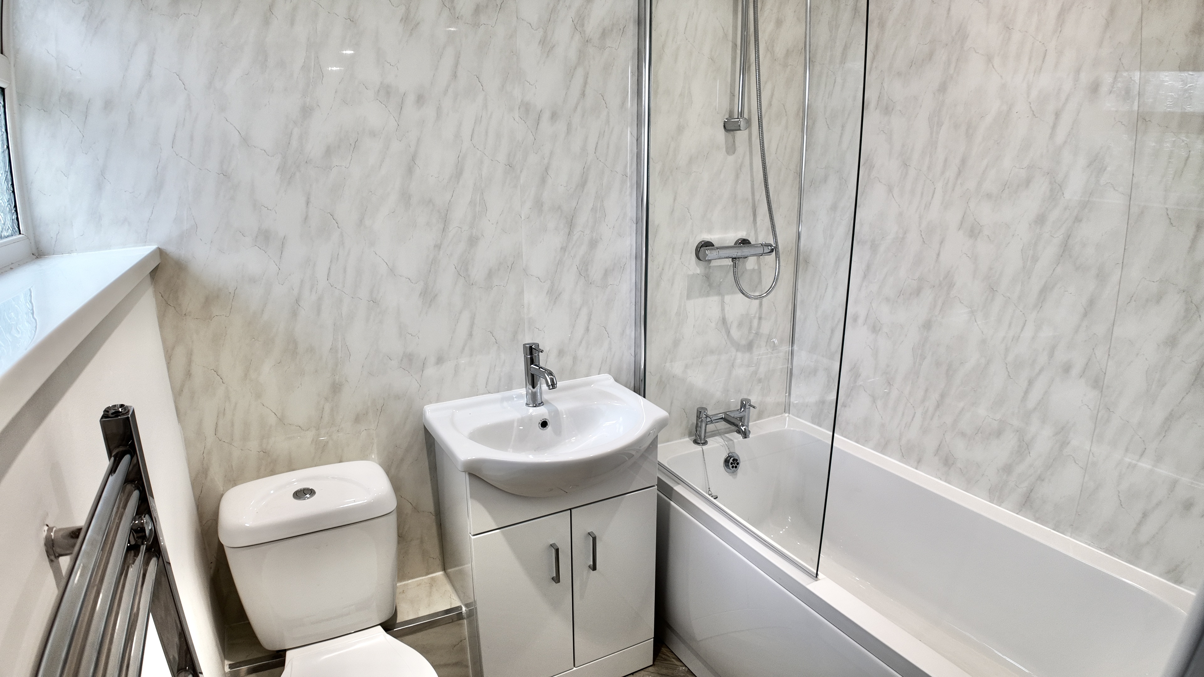 Upstairs, a small landing leads you to three bedrooms. The two double bedrooms are generously sized, offering plenty of space for restful nights and personal touches. Large windows in both rooms keep things light and airy, while neutral decor provides a blank canvas for your own style. The third bedroom is a cosy single, ideal for a child’s room, guest space or even a home office if you need it.