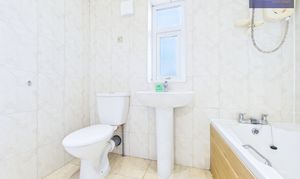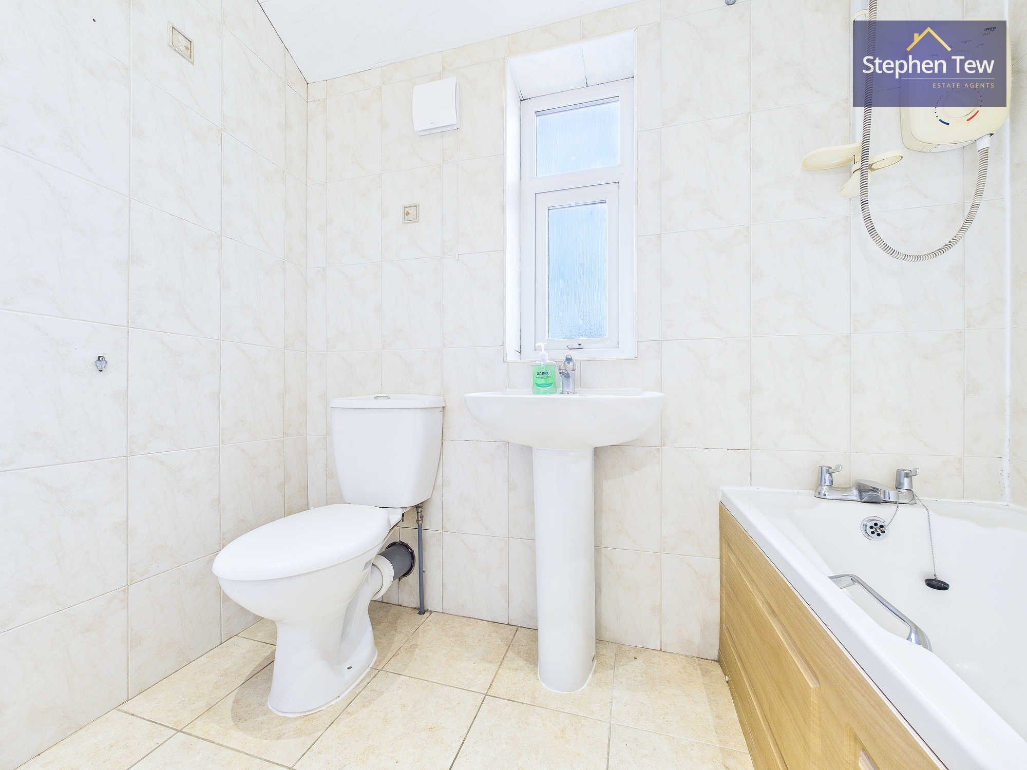 The family bathroom is conveniently located off the landing and is fitted with a modern suite, including a bath with shower over, wash basin, and WC. The contemporary tiling and fixtures contribute to a clean and stylish finish, ensuring comfort and practicality for day-to-day living.