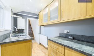 The kitchen is situated to the rear of the property and is fitted with a range of contemporary units, work surfaces, and integrated appliances. The design allows for efficient meal preparation, with thoughtful storage solutions and space for additional appliances as required.