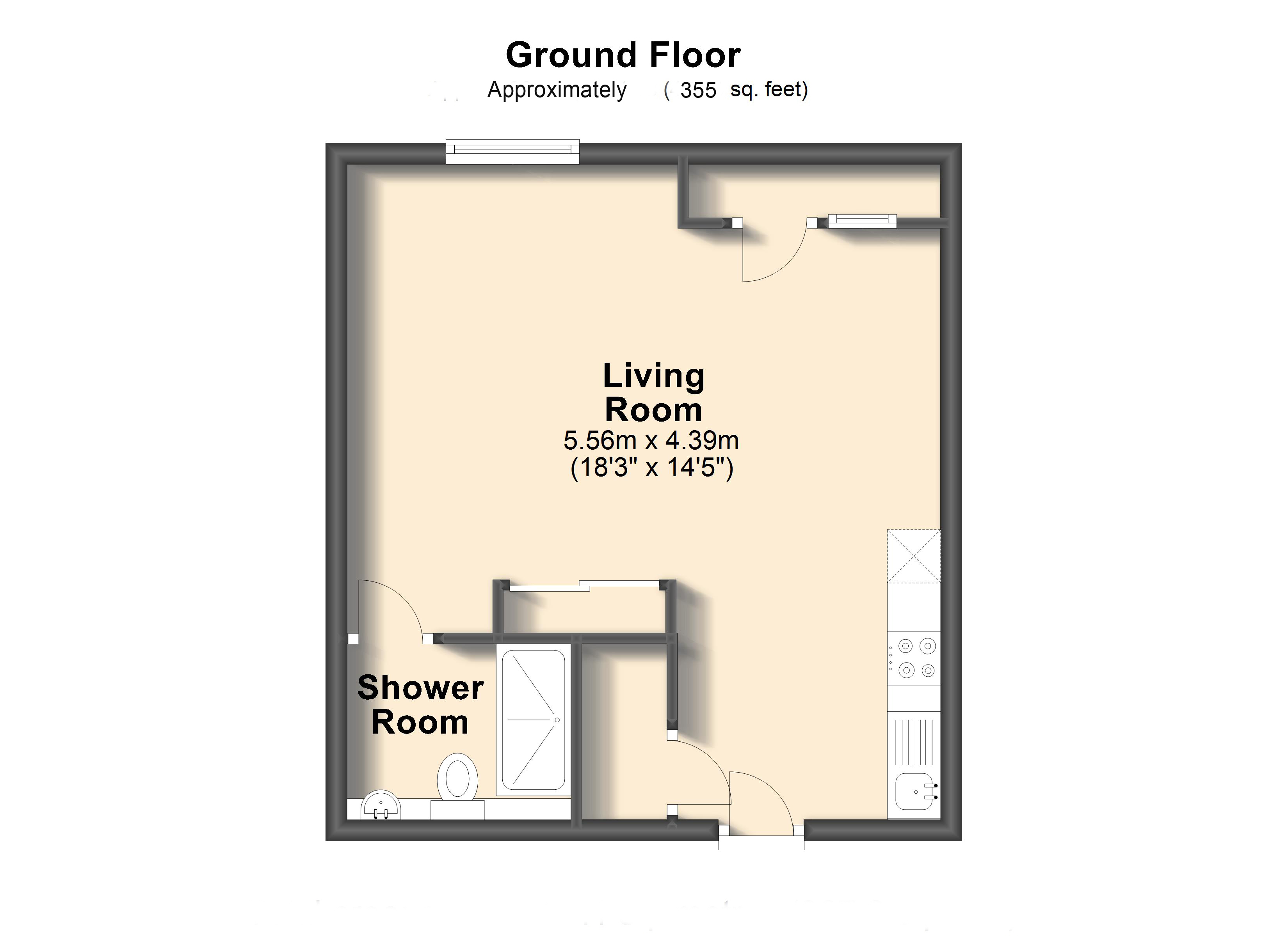 - Approx Sq Feet: 355 sqft