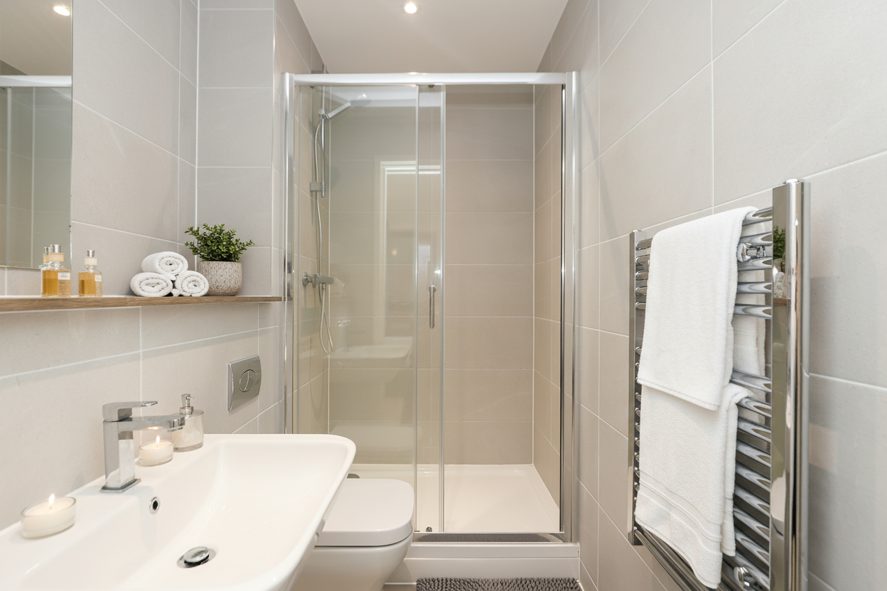 - Sleek Fully Tiled Shower Rooms With Porcelanosa Fittings