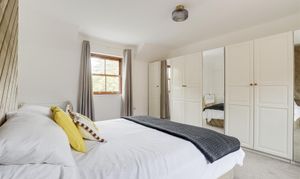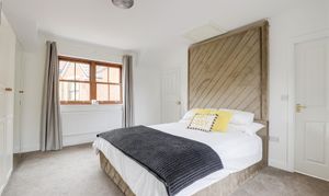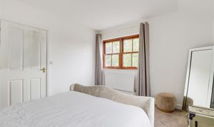 The first bedroom has two wood-framed sliding sash windows, newly-fitted carpeted flooring, a radiator, access into the en-suite, and access into the loft with lighting via a drop-down ladder.