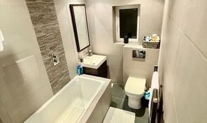 This property features two spacious double bedrooms, providing ample space for comfort and rest, the main bedroom includes fitted furniture and both are carpeted. The modern bathroom is equipped with concealed mood lighting which is touch activated, adding a touch of luxury to your daily routine. Outside, a rear courtyard style garden offers a private outdoor space for relaxation and al-fresco dining.