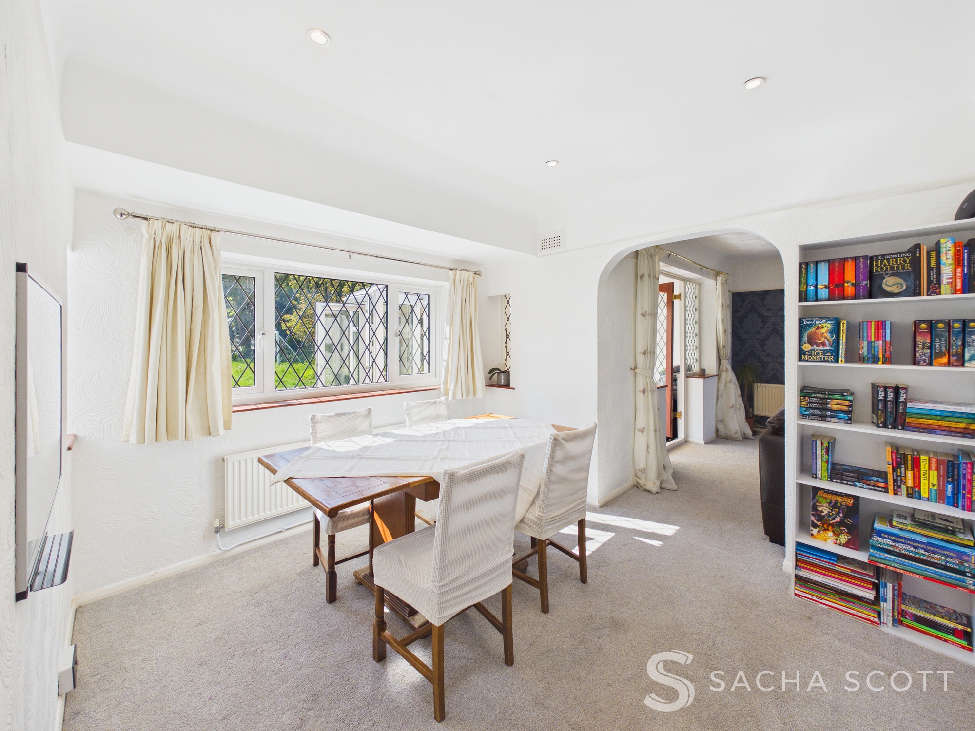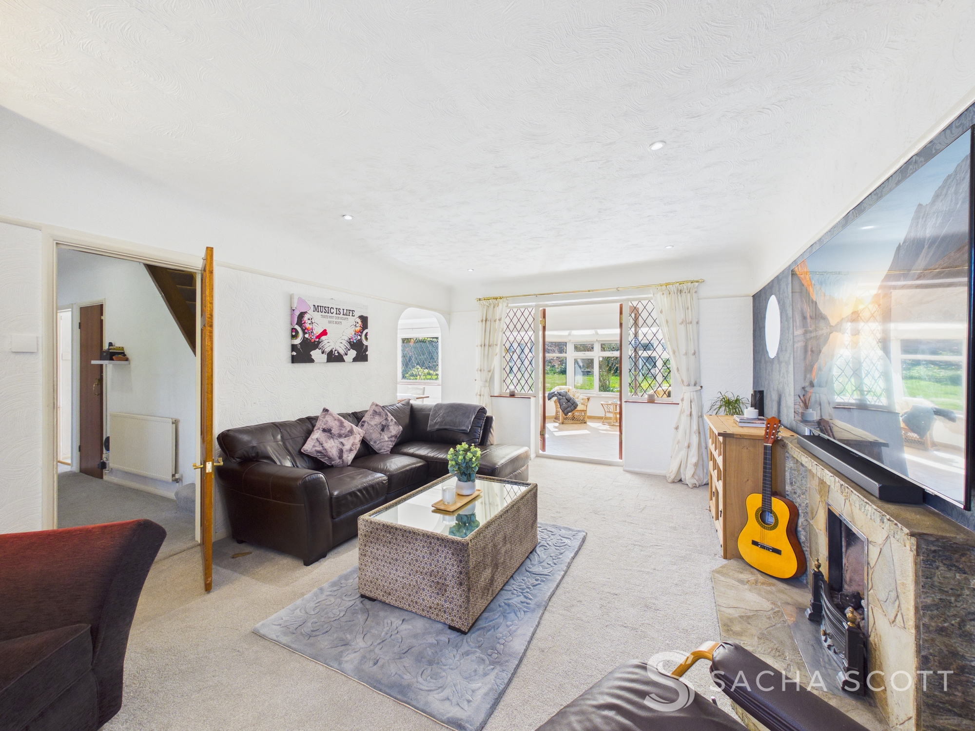 The living room is lovely and bright, enjoying triple aspect natural light from the front, side and rear, with views over the generous driveway and direct access to the conservatory. Leading from the main hallway, this welcoming space also connects through to the dining room, which overlooks the rear garden.