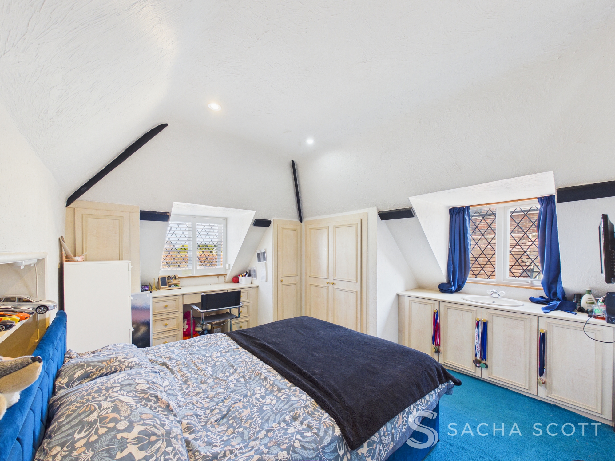 Situated on the first floor, bedroom two is a generous double featuring fitted wardrobes, additional storage and a sink. Neutrally presented, it offers excellent scope to be reconfigured to include an en-suite bathroom, subject to the usual permissions and consents.