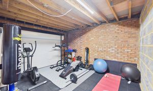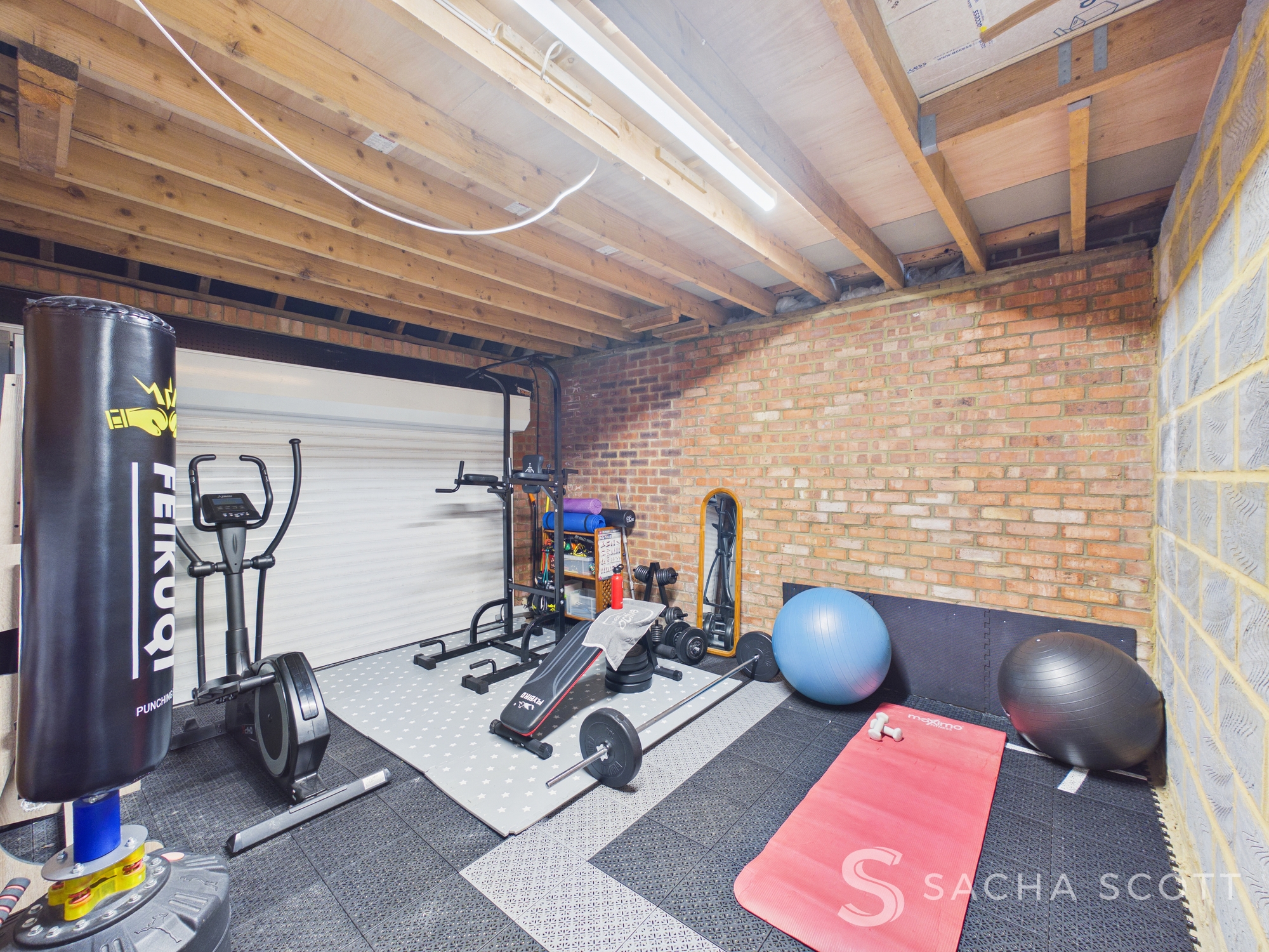 Currently used as a home gym, the garage is accessible from within the property and offers storage and up and over door access to the driveway.