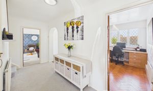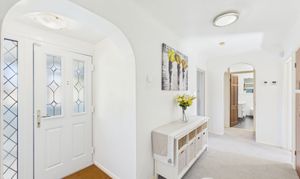 Neutrally presented, the entrance hall to this lovely home is generous in size and offers room for a good sized sideboard.