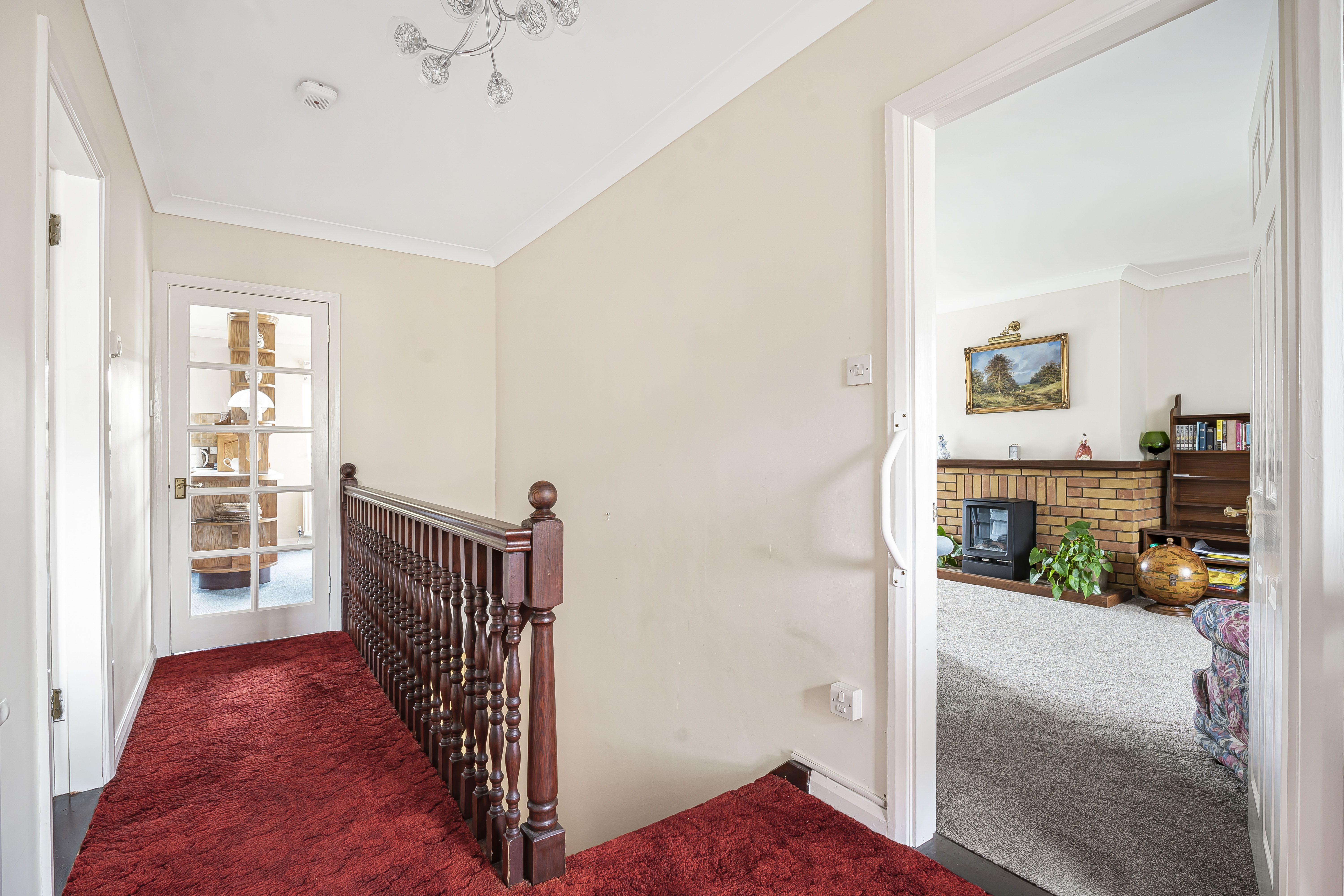To the left, a double bedroom, used as a snug with built in storage.