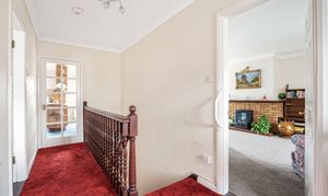 In brief you enter into the entrance hallway on the first floor, with stairs to the ground floor. To the right you have a large dual aspect lounge with window to the front and Patio doors with access to the balcony which overlooks the garden and feature brick fireplace.