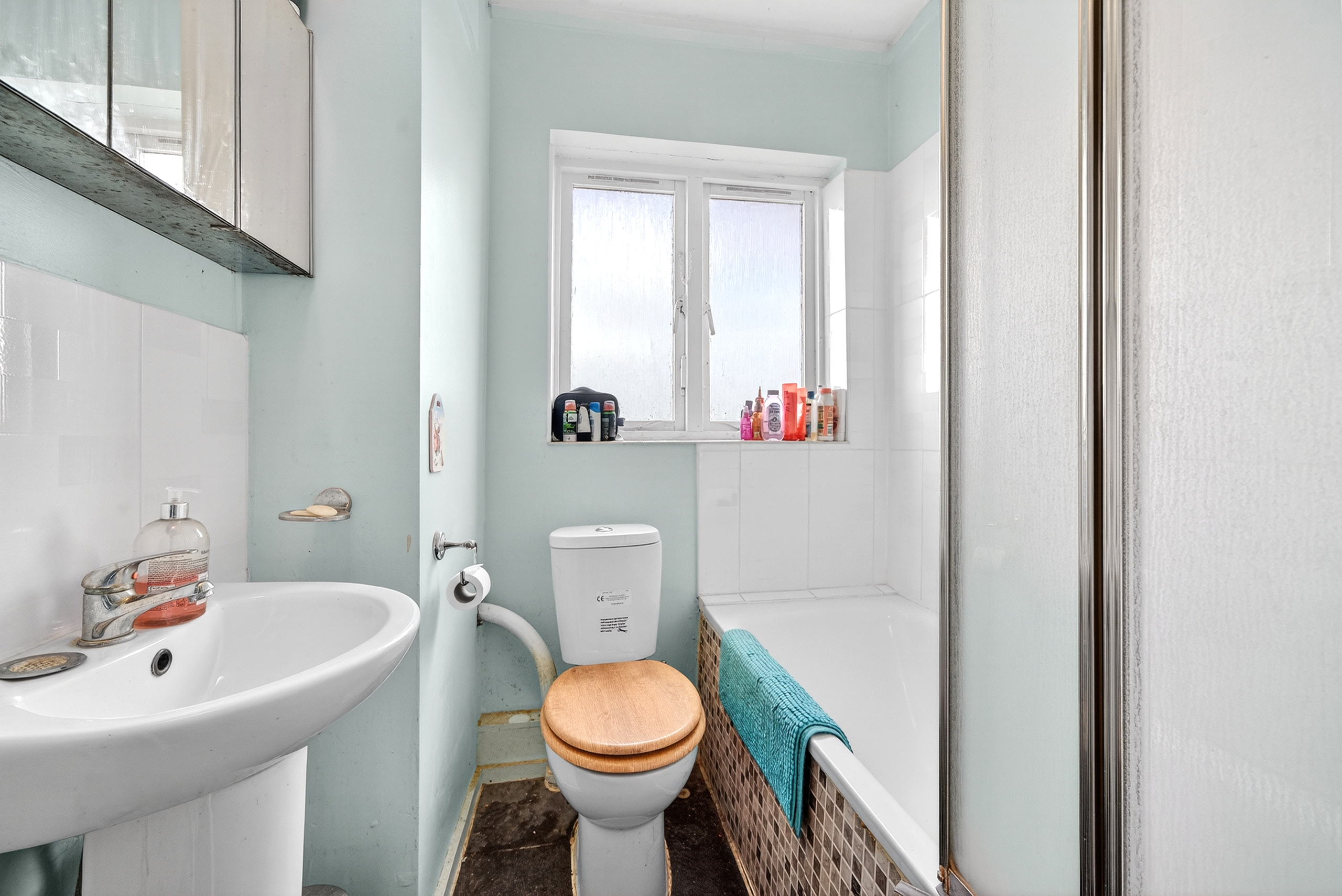 The bathroom is well proportioned for the size of the flat and has a full-length bath.