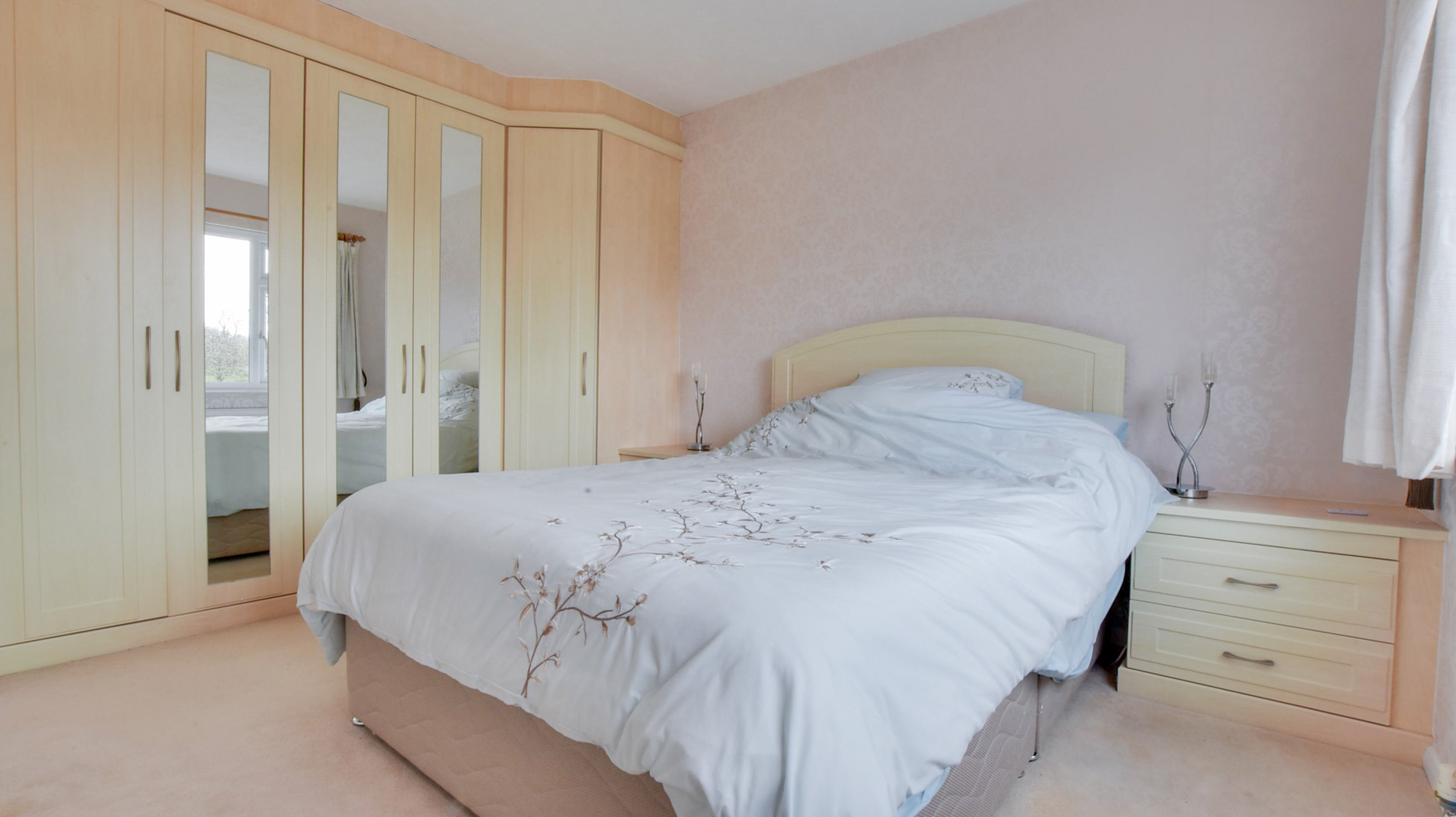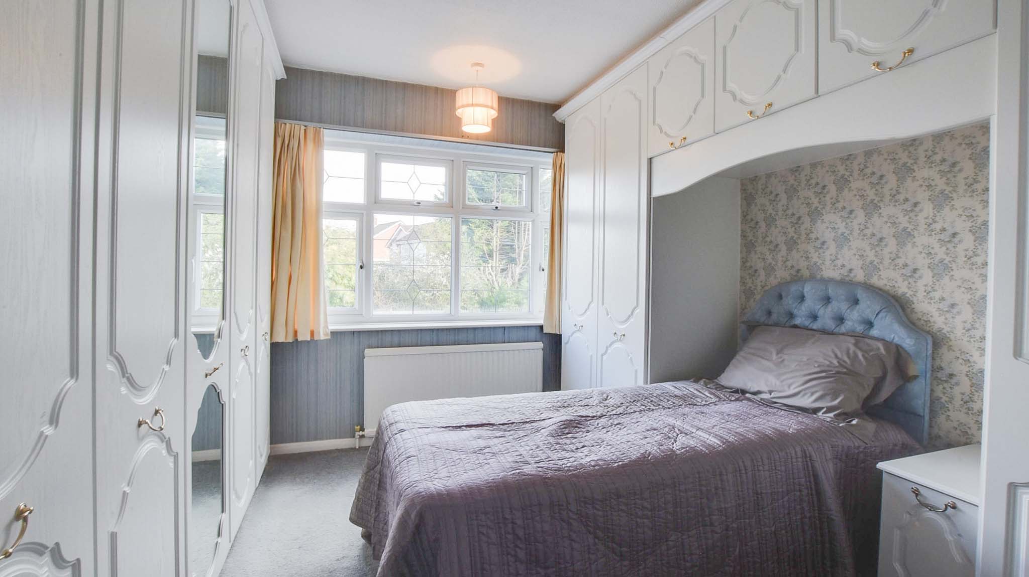 With a window to the rear elevation, built-in wardrobes, wall lighting, carpeting and a radiator.