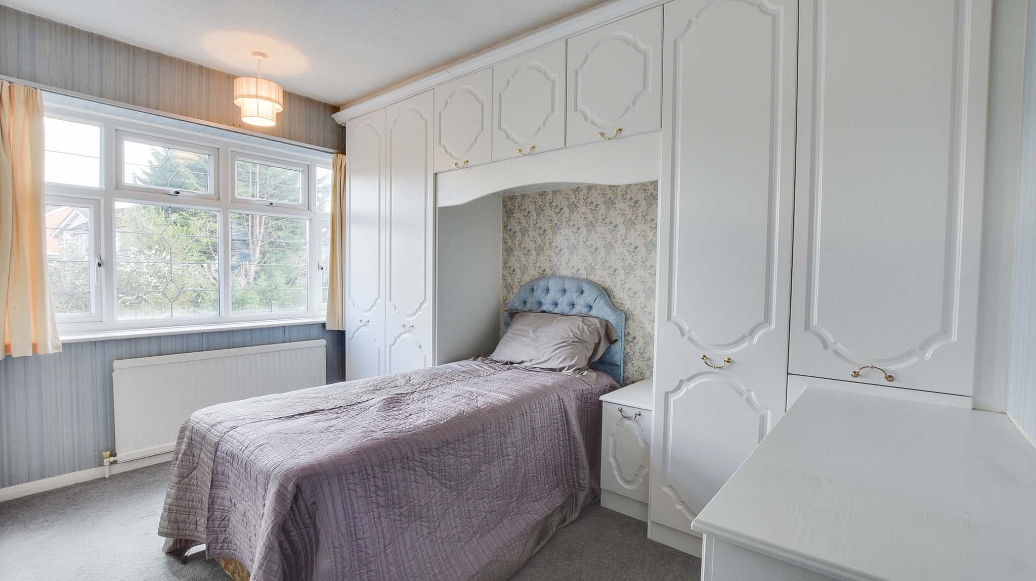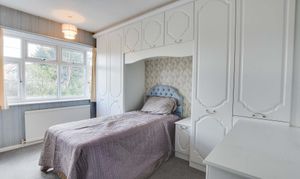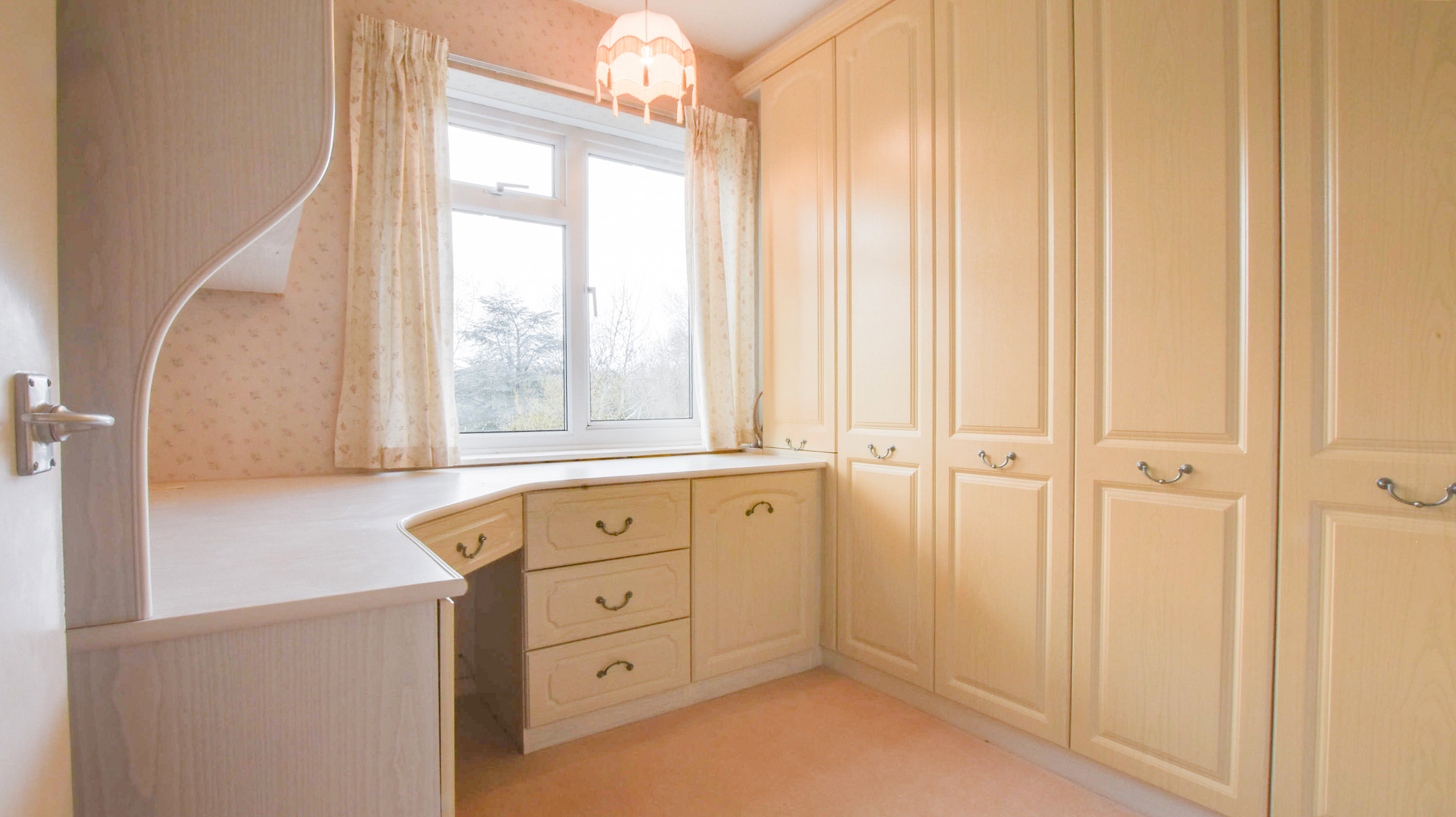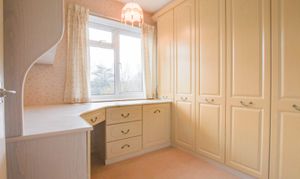 With a window to the rear elevation, built-in wardrobes and desk, access to the boiler, and a radiator.