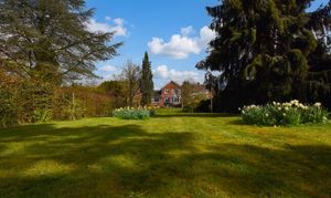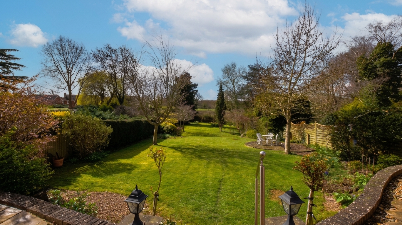 Externally, the rear garden features a wrap-around patio area, lawn, and a second seating area, enjoying a good degree of privacy and not being directly overlooked, with access to a brook at the rear boundary.
