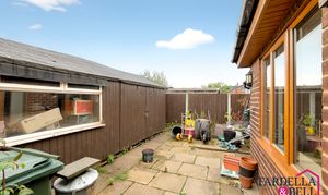 Accessed either via the driveway or via the stable door in the kitchen this rear garden has - Paved area with mature bushes and shrubs, fenced boundaries, cold water tap, raised flower beds, large shed / outhouse for additional storage and access to the rear of the garage.