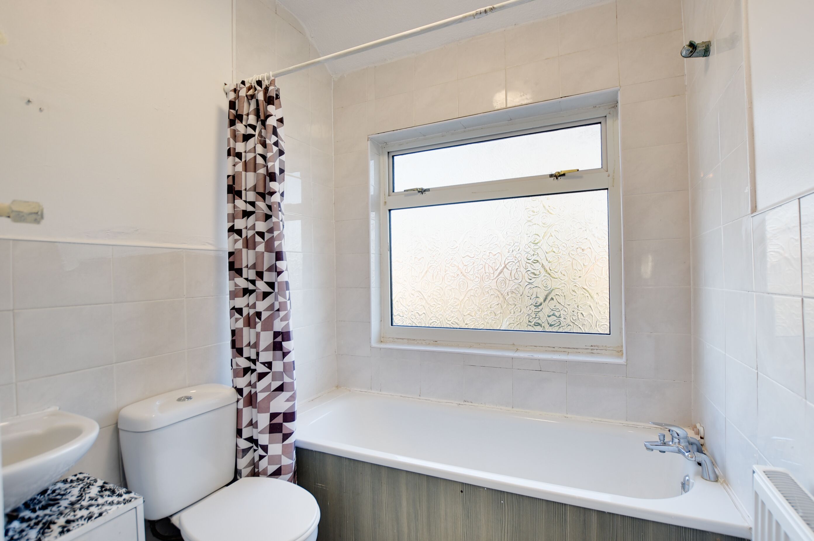 With double glazed window to the rear elevation, bath, low-level WC, wash hand basin, part tiled walls, radiator.