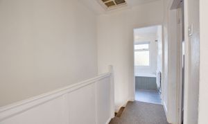 With stairs to first floor, under stairs storage cupboard, radiator.