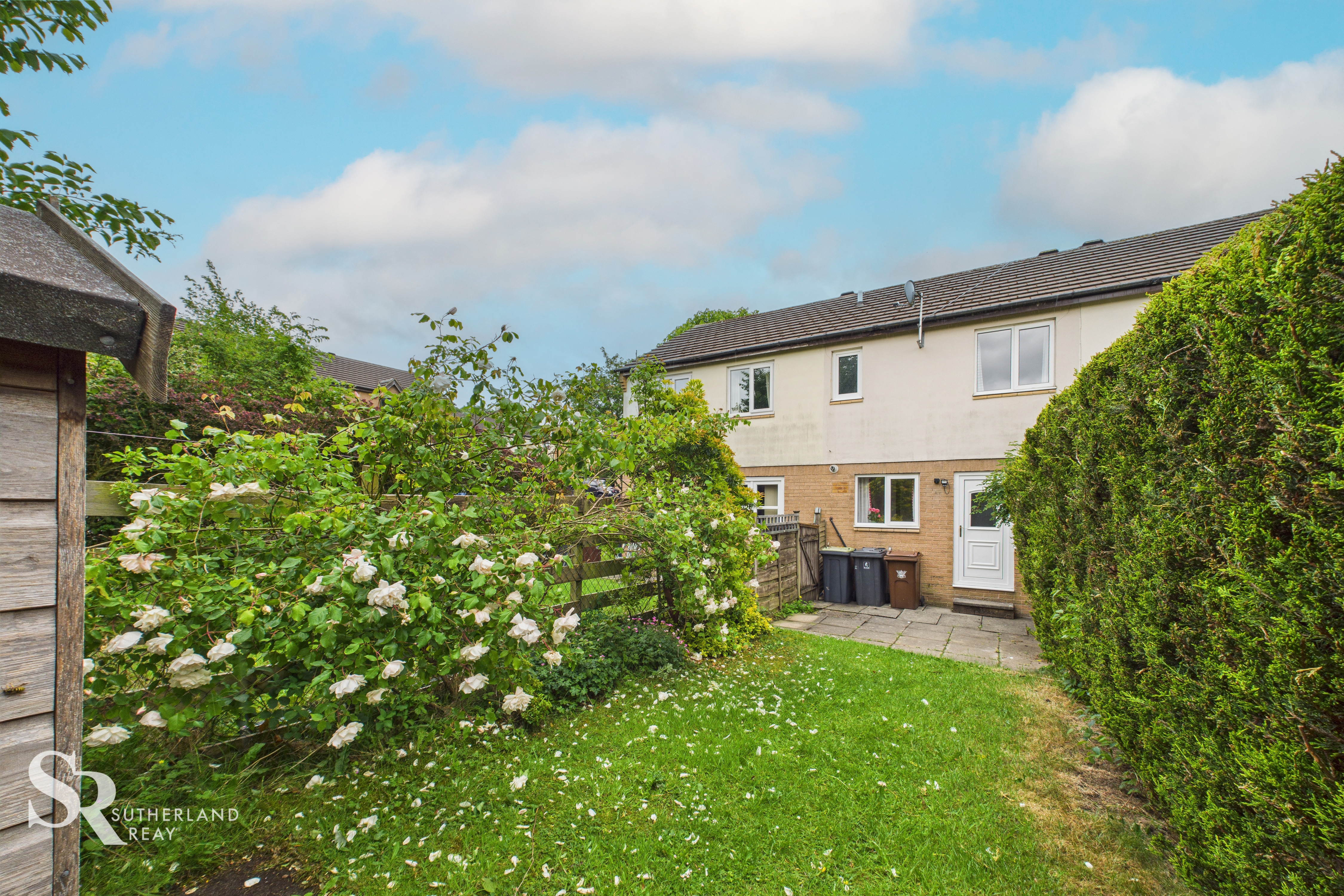 This charming, enclosed garden features a paved patio area, ideal for outdoor entertaining, and transitions to a well-maintained lawn garden. Verdant, mature hedges line one side and the rear boundary, providing excellent privacy, while a neat wooden fence defines the other side. A garden gate allows access for bin maintenance. A garden shed offers valuable extra storage space for garden tools and equipment.