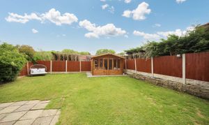 The rear garden is a standout feature, with a well-maintained lawn and a peaceful setting perfect for children to play or for enjoying outdoor gatherings in the warmer months.