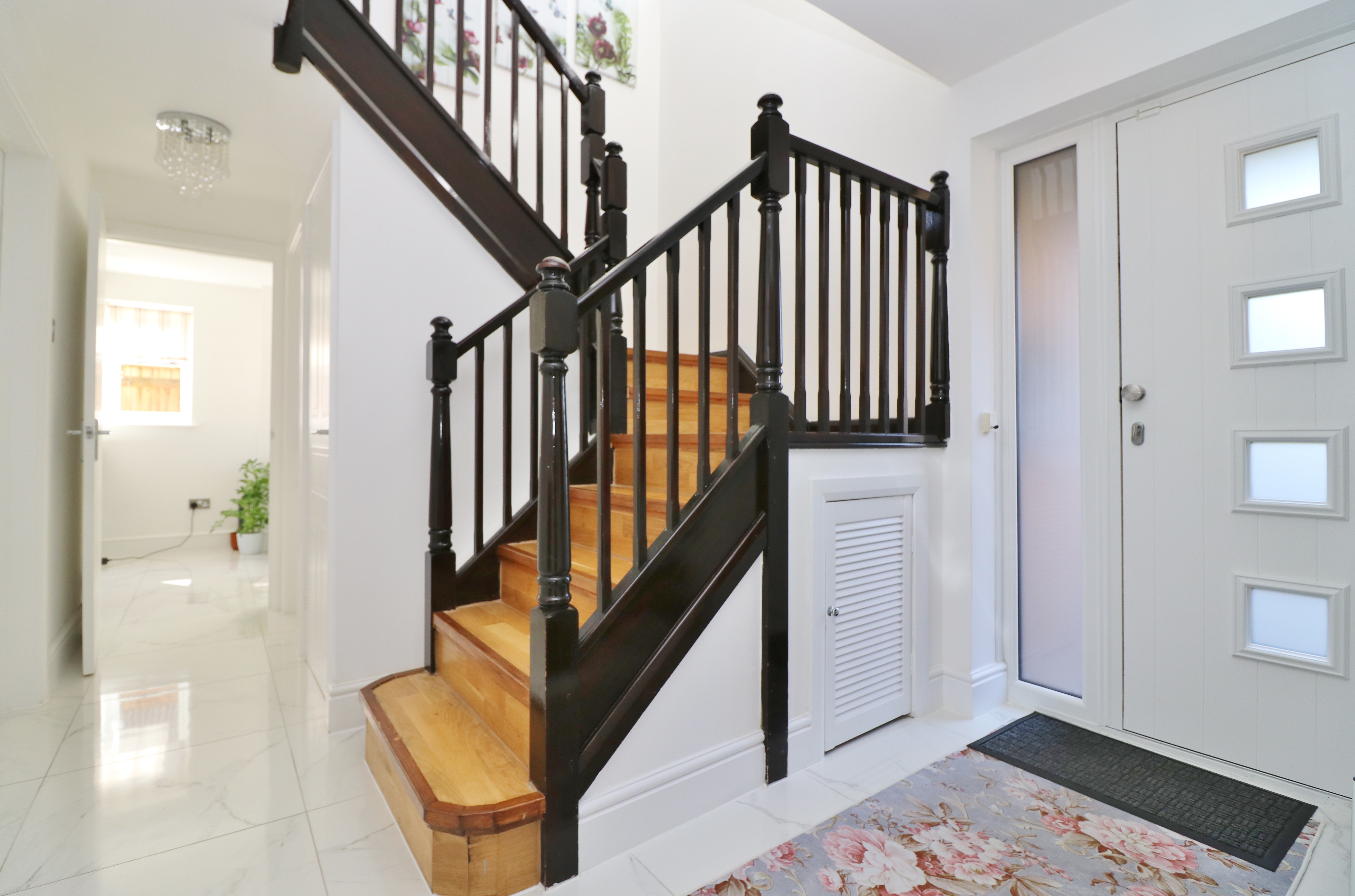 The entrance hall has stairs to the first floor, a storage cupboard and doors through to all principal rooms, including the WC.