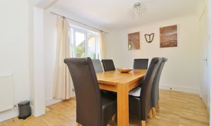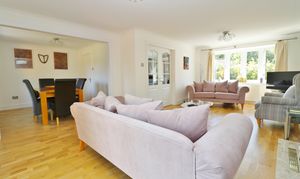 The spacious lounge/diner enjoys a dual aspect with French doors opening out to the rear garden and wraps around to the dining room which also has a window to the rear.