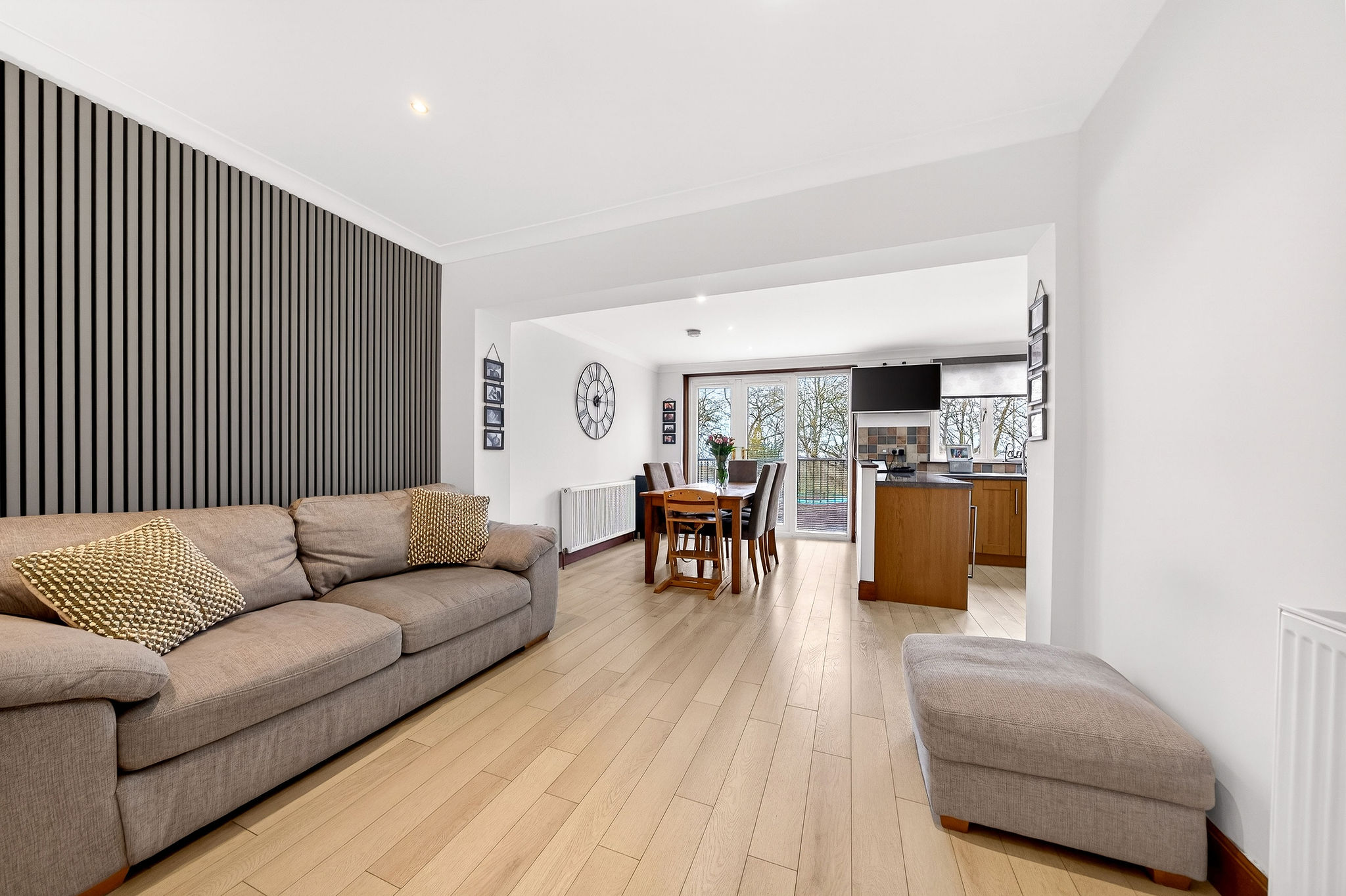 Externally, there is a low maintenance front garden and an extensive tarred driveway to the front and side providing off-street parking for multiple vehicles. To the rear, the large enclosed garden offers a mix of lawn, decking and stone chipped areas, ideal for both relaxing and entertaining. A substantial basement beneath the property, with power and light, provides excellent additional storage.