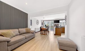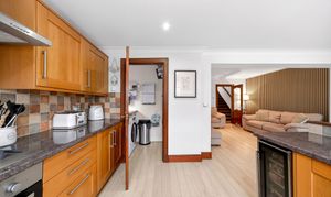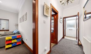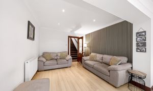 Set within a popular and well-connected location, the property blends period charm with modern living, featuring high ceilings and a flexible layout throughout. The accommodation comprises an entrance vestibule leading to a welcoming hallway with a large under-stairs storage cupboard. To the front, there is a sitting room with feature fireplace, which could also be utilised as a third bedroom. A separate family room/lounge provides additional living space. The ground floor also includes a modern four-piece bathroom with separate bath and corner shower, along with a spacious open plan kitchen / dining / living room, forming the main hub of the home. The fitted kitchen features solid oak doors, an integrated electric oven, 5-ring gas hob with extractor hood, dishwasher, wine fridge and a useful utility cupboard.