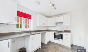 - Kitchen with wall and base units, built-in oven, hob, extractor, and plenty of space for appliances