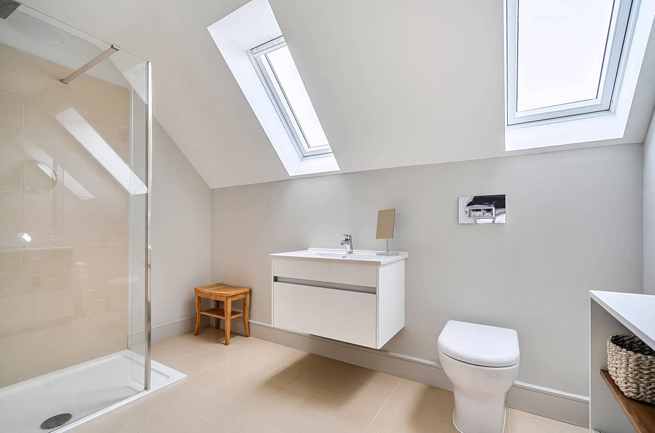 The second floor is dedicated to a large and private principal bedroom suite with walk-in wardrobe. This impressive space benefits from its own en-suite shower room and includes areas with restricted head height, adding character while maximizing the available floor area.