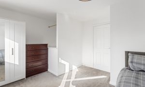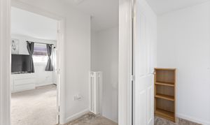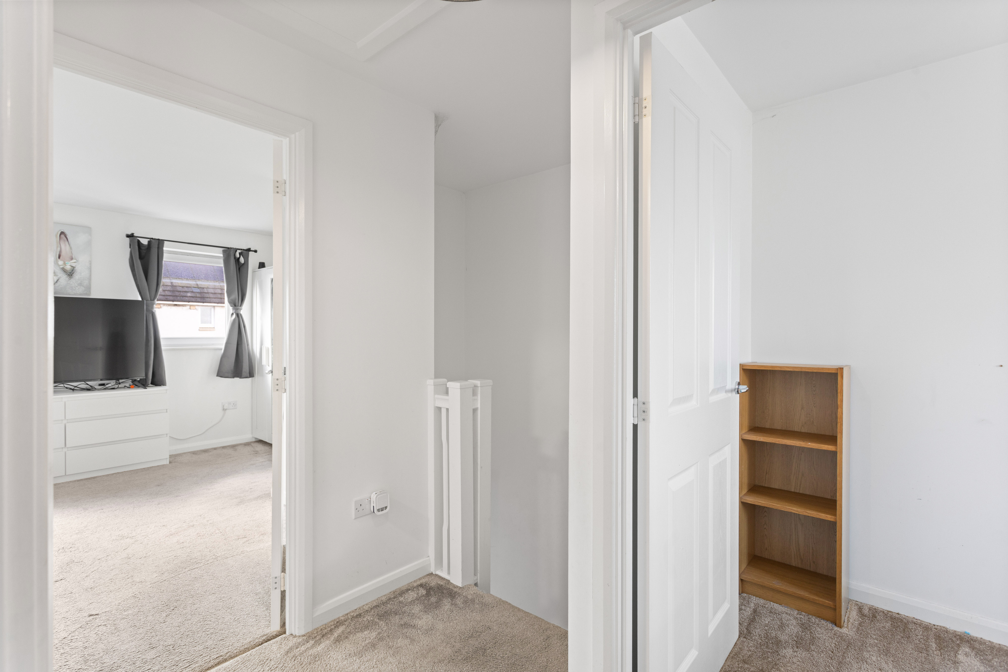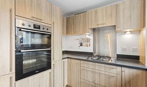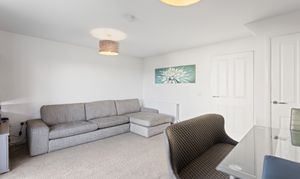 Upon entering, you are welcomed into a bright hallway with a useful storage cupboard to the left, ideal for coats and everyday essentials. To the right sits the contemporary kitchen, positioned at the front of the property and fitted with a range of integrated appliances including a fridge freezer, washing machine, dishwasher, four point gas hob and oven. The kitchen offers ample worktop space and benefits from a large front facing window, allowing plenty of natural light to fill the room.