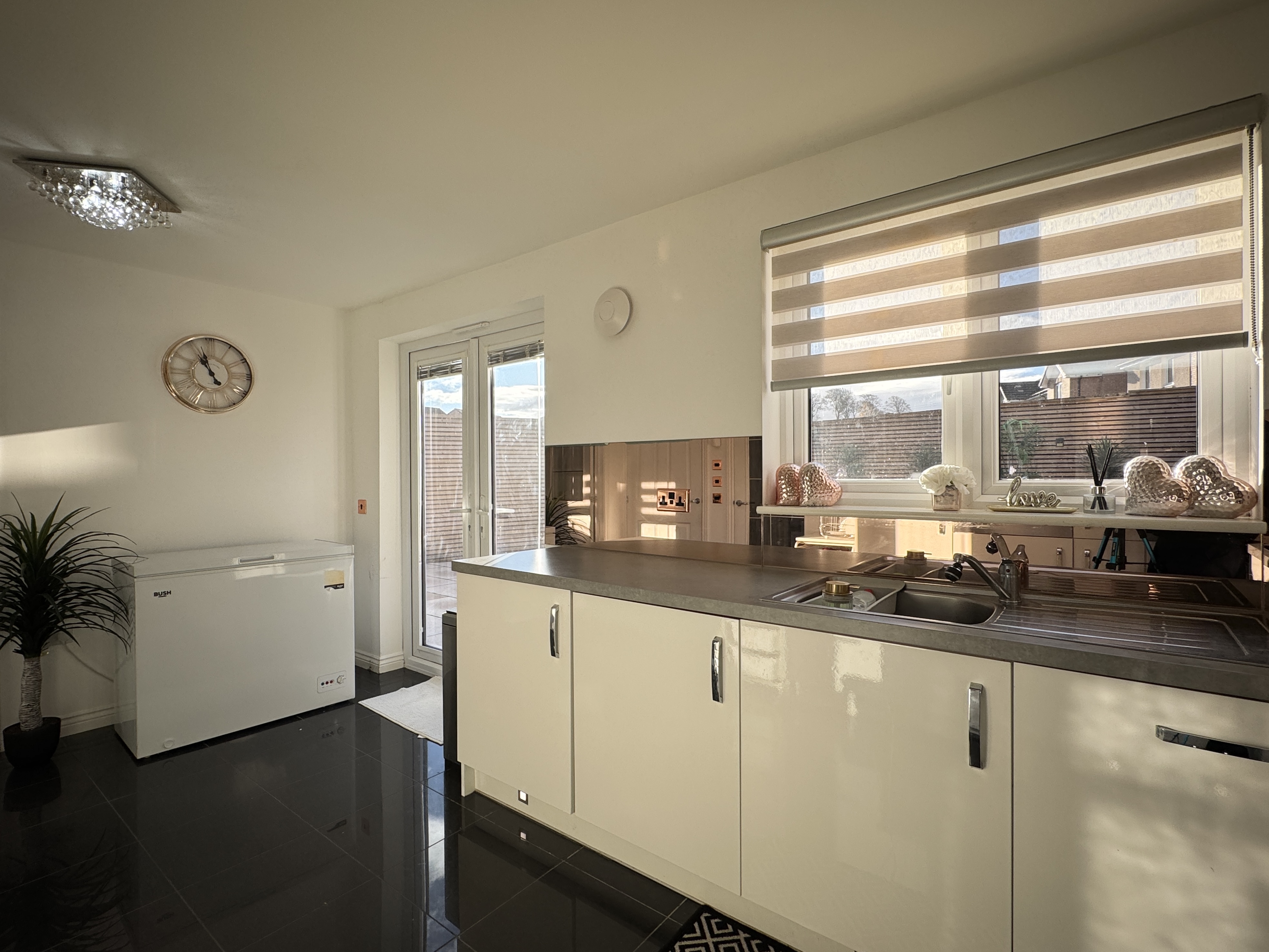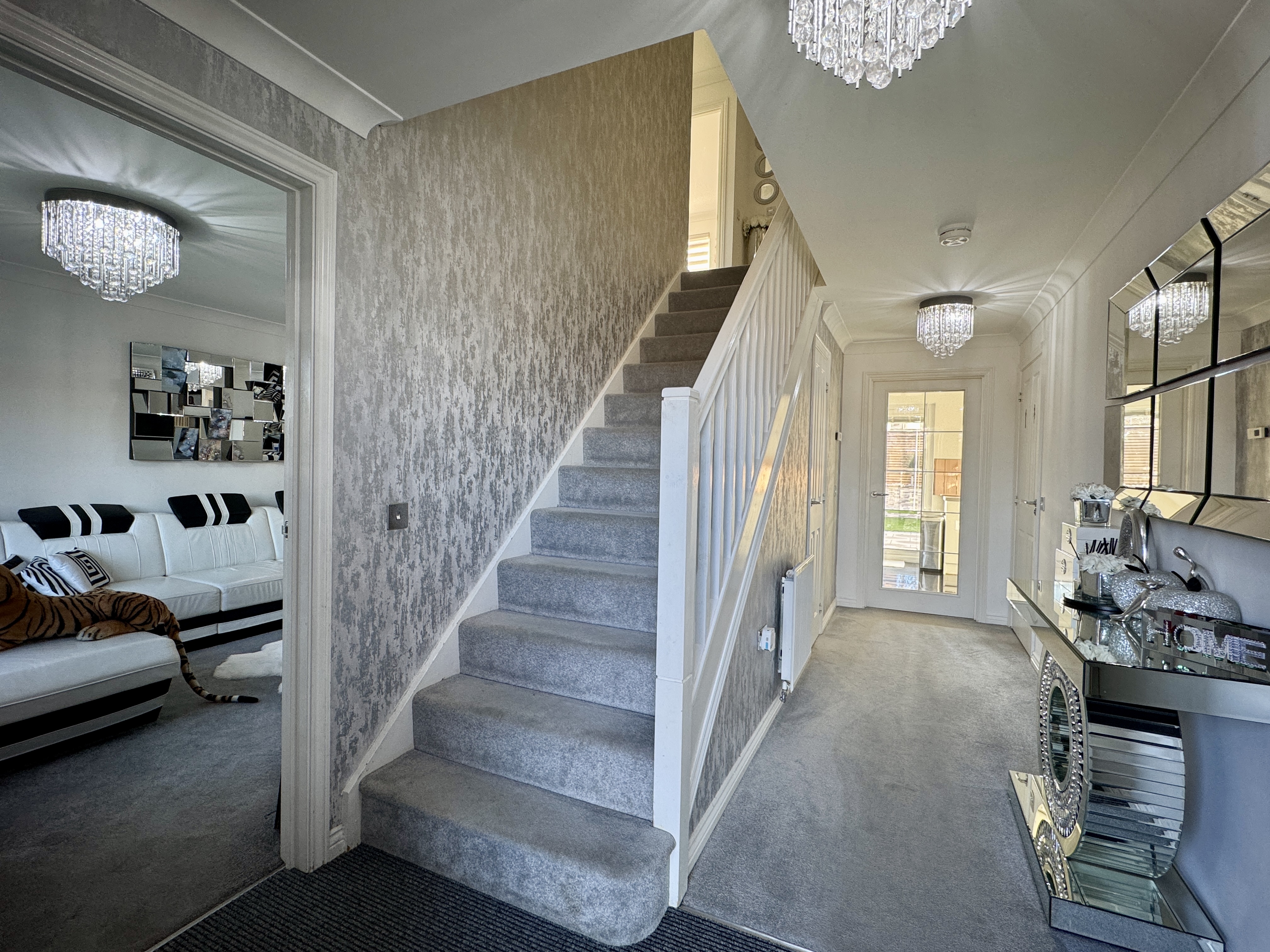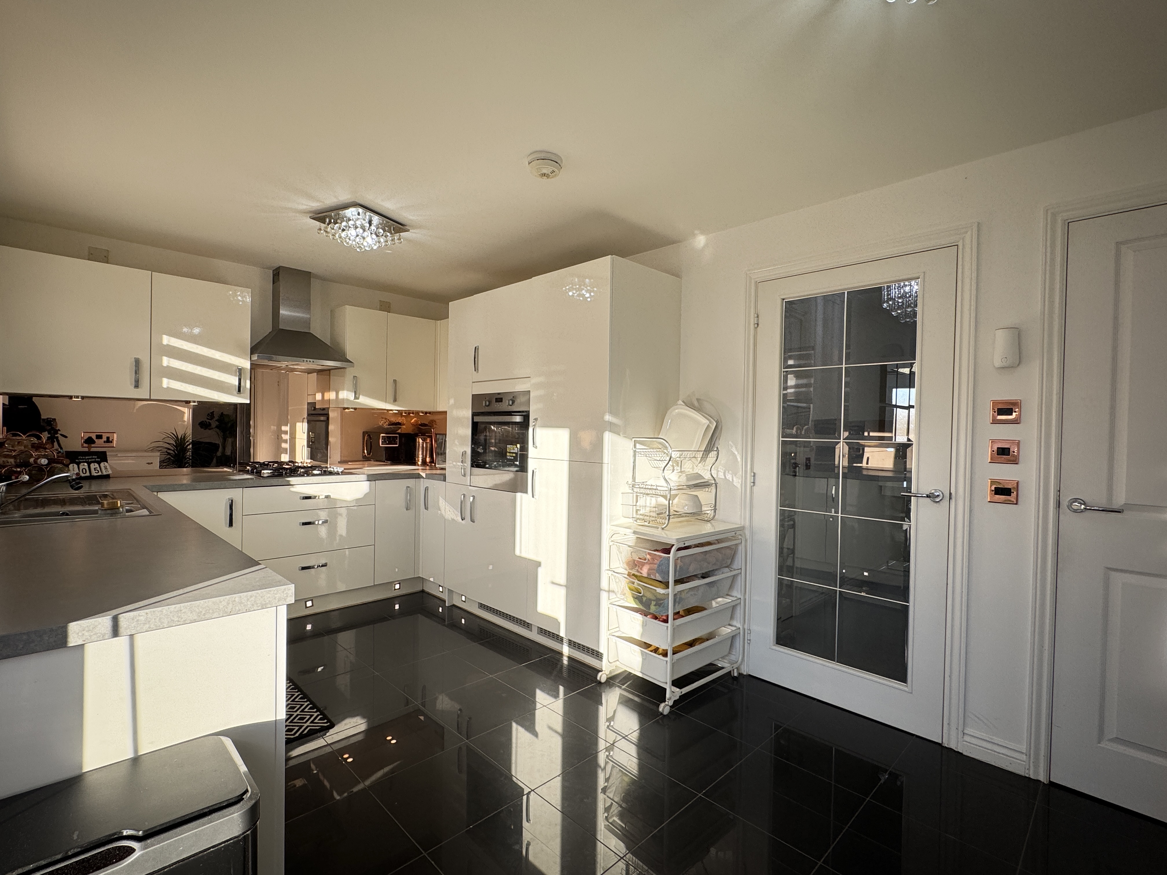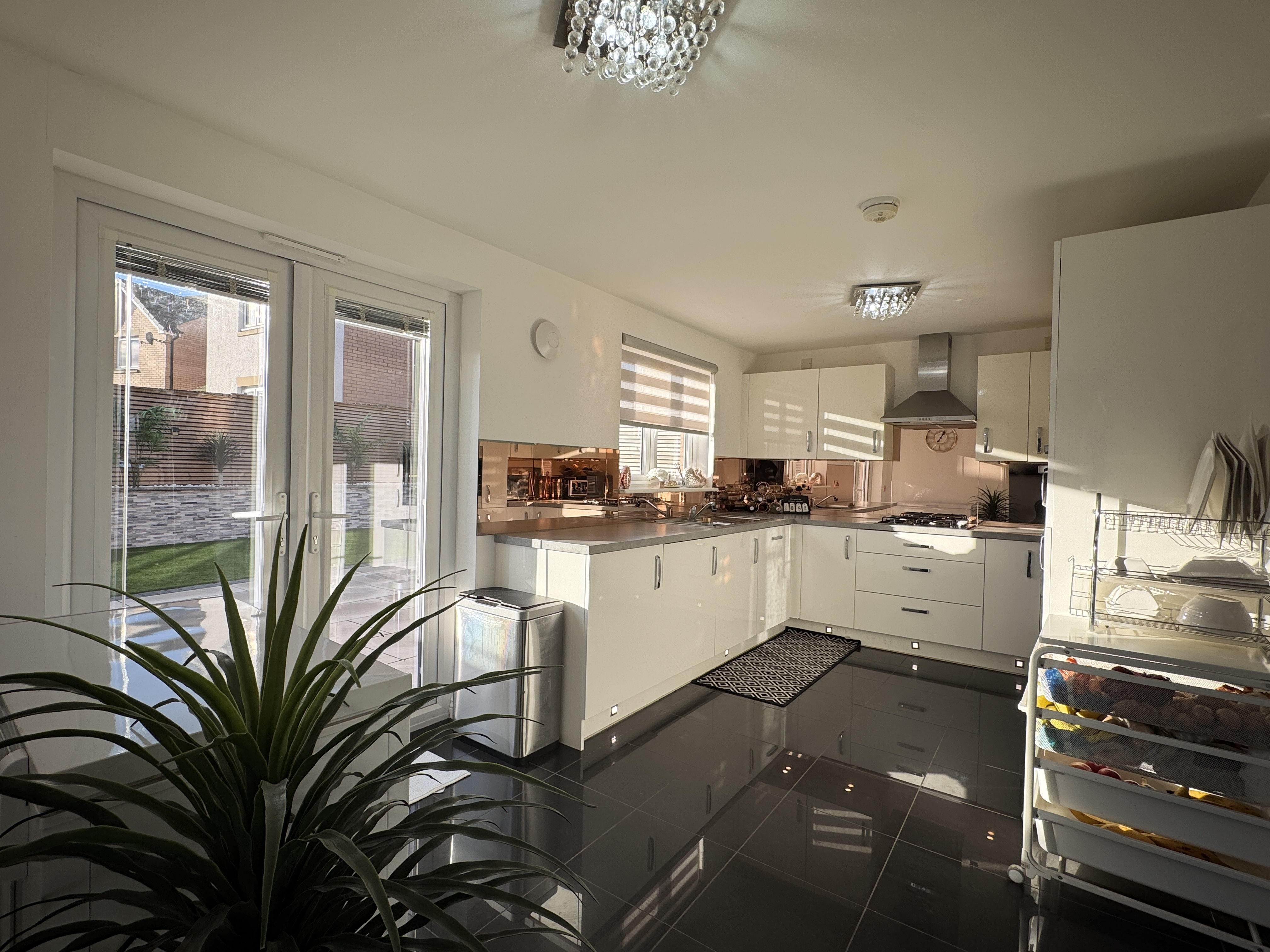 - Impressive and upgraded kitchen diner complete with integrated fridge freezer, oven, gas hob, dishwasher and washing machine, leds in kickplates and under unit lighting