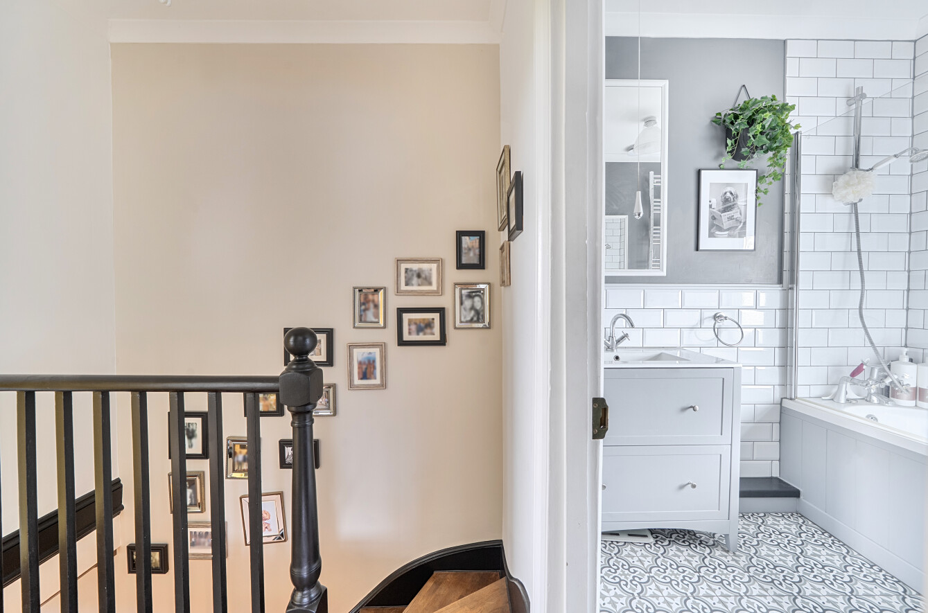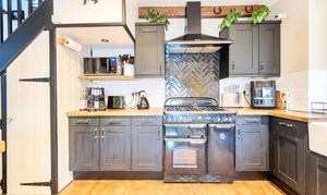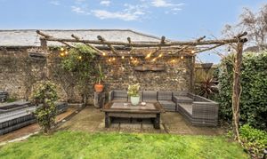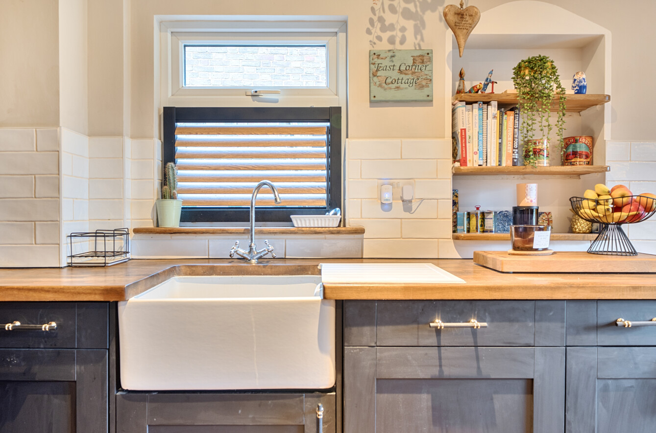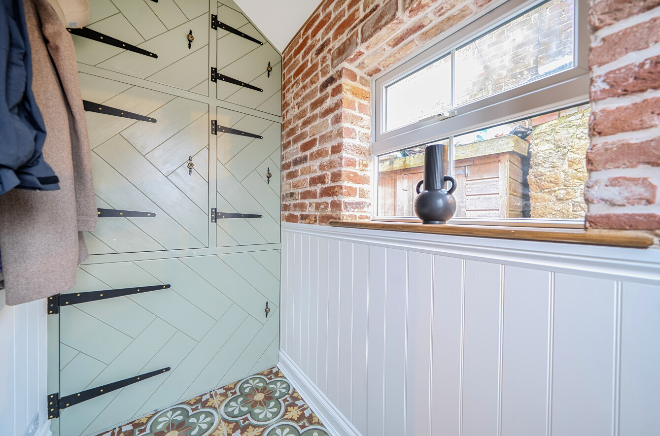 Approached via gentle rising steps, the front door opens into a welcoming traditional entrance hall. The elegant yet cosy sitting room is rich in character, featuring a mellow exposed brick wall, a wood-burning stove and picturesque views across the farmland, a truly inviting space for relaxed country living. To the rear, the spacious kitchen/dining room is appointed with classic shaker-style cabinetry, a porcelain butler sink, integrated cooker hood and dishwasher, seamlessly combining timeless design with modern convenience. A useful utility room provides further storage, space and plumbing for a washing machine and houses the oil-fired boiler. The first floor offers three bedrooms, including two doubles and a charming single bedroom which is currently utilised as a dressing room, all served by a stylish contemporary bathroom.