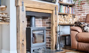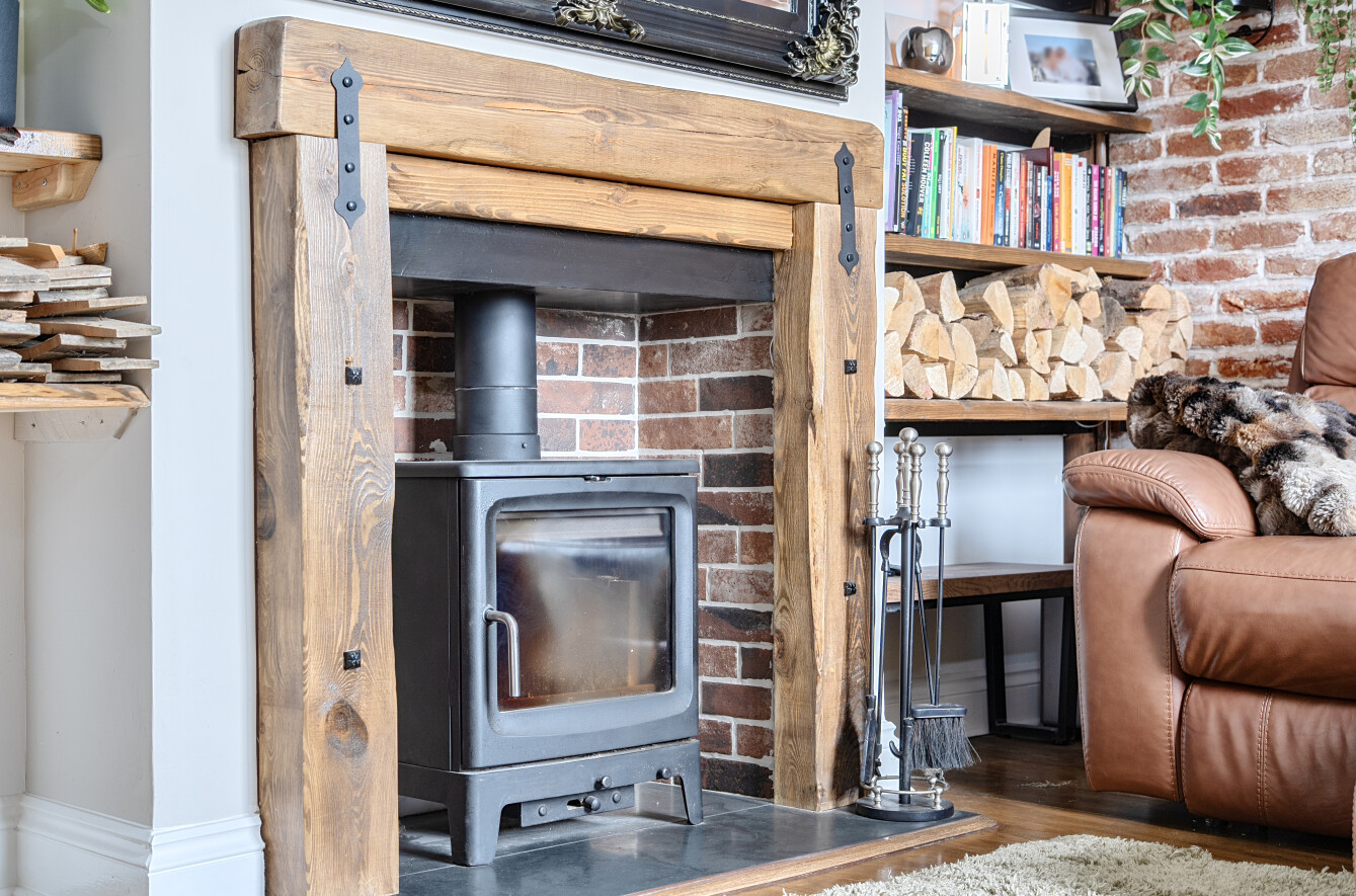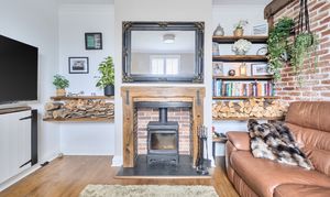 - Homely sitting room with wood burning stove and rural view