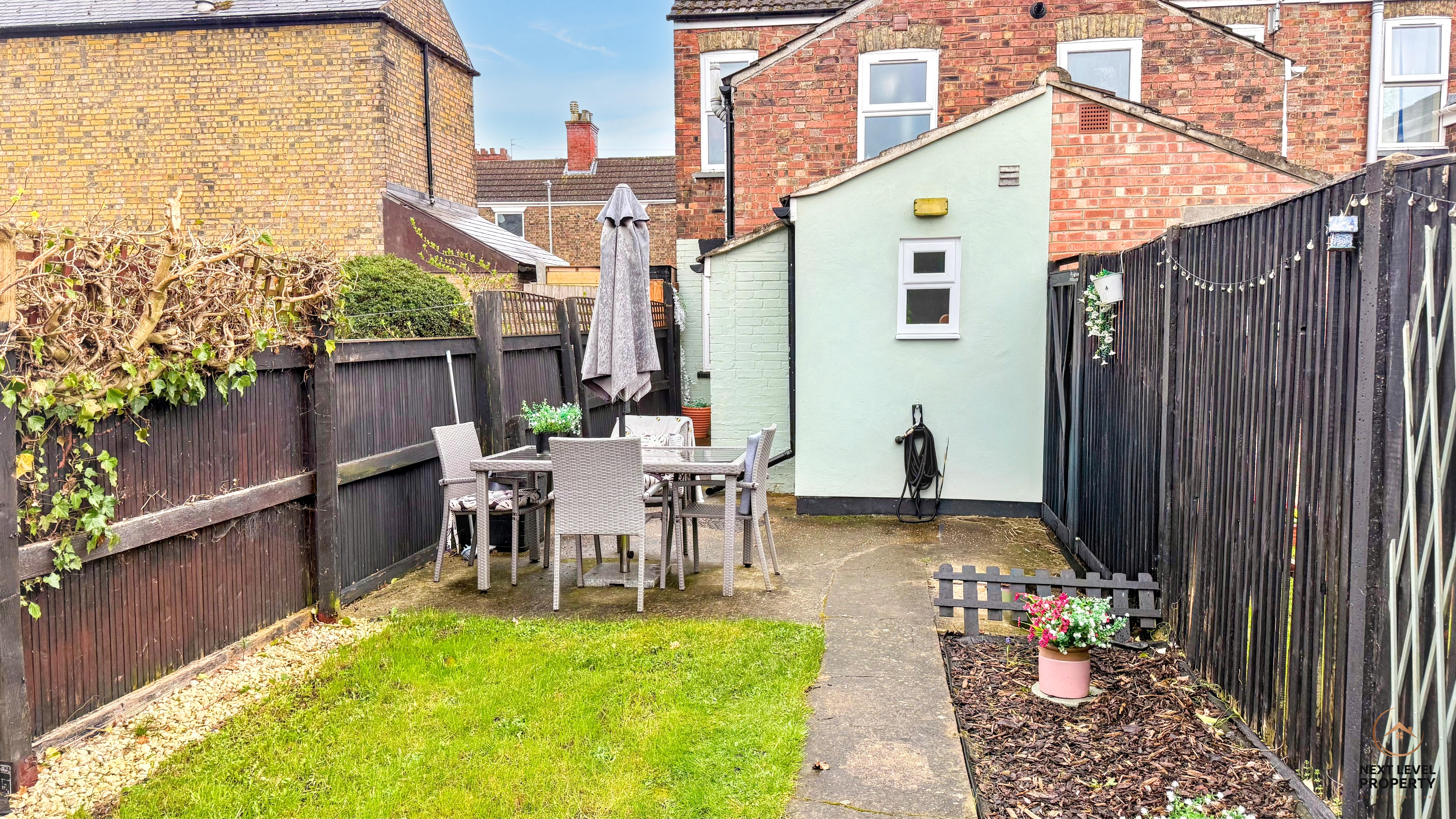 The property benefits from a right of way via a shared passage between numbers 2 and 3 County Road, providing access through to the rear garden. The garden itself is a pleasant and enclosed space, featuring a concrete patio ideal for outdoor seating and entertaining, alongside a lawned area for everyday enjoyment. A garden shed offers useful storage, and with the garden being fully enclosed, it provides a safe and secure environment for both children and pets.