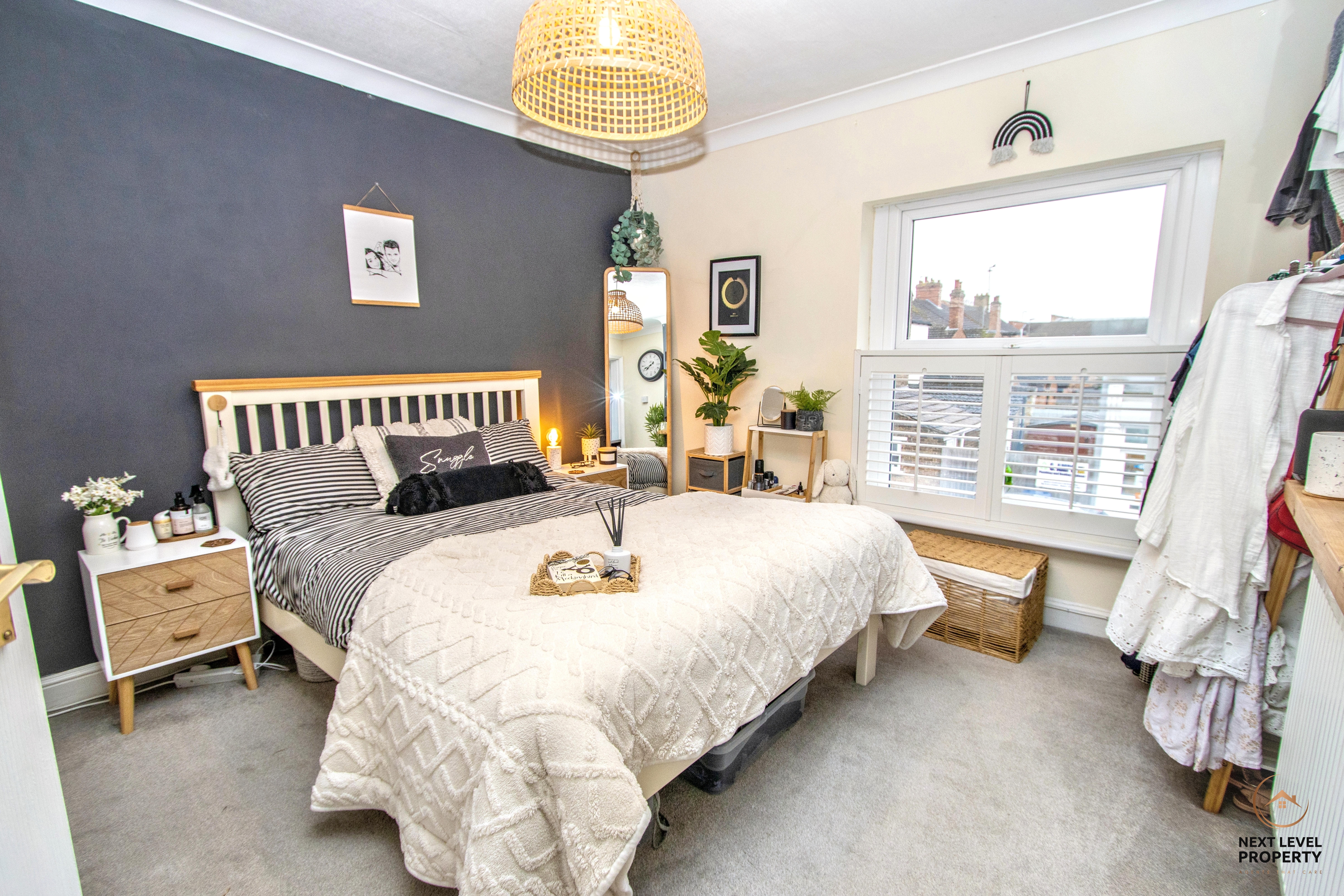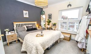 A generously sized double bedroom offering a calm and comfortable retreat, complete with a built-in wardrobe providing excellent storage. A UPVC window to the front, fitted with stylish café shutters, allows for plenty of natural light while maintaining privacy — a perfect space to relax and unwind.