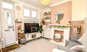 A welcoming and characterful living space, entered via the front entrance door and centred around an attractive feature fireplace, creating a cosy focal point to the room. A UPVC window to the front fitted with stylish café shutters allows natural light to pour in while maintaining privacy. Built-in storage adds practicality, keeping the space both functional and uncluttered — a perfect spot to relax and unwind.