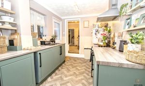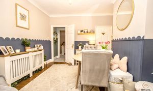 A well-proportioned dining space with plenty of room for a table and chairs, making it ideal for both everyday meals and entertaining. A large understairs walk-in storage cupboard provides excellent practical space, perfect for keeping everything neatly tucked away. A UPVC window to the rear brings in natural light, while a walkway leads seamlessly through to the kitchen, creating a sociable and connected layout.