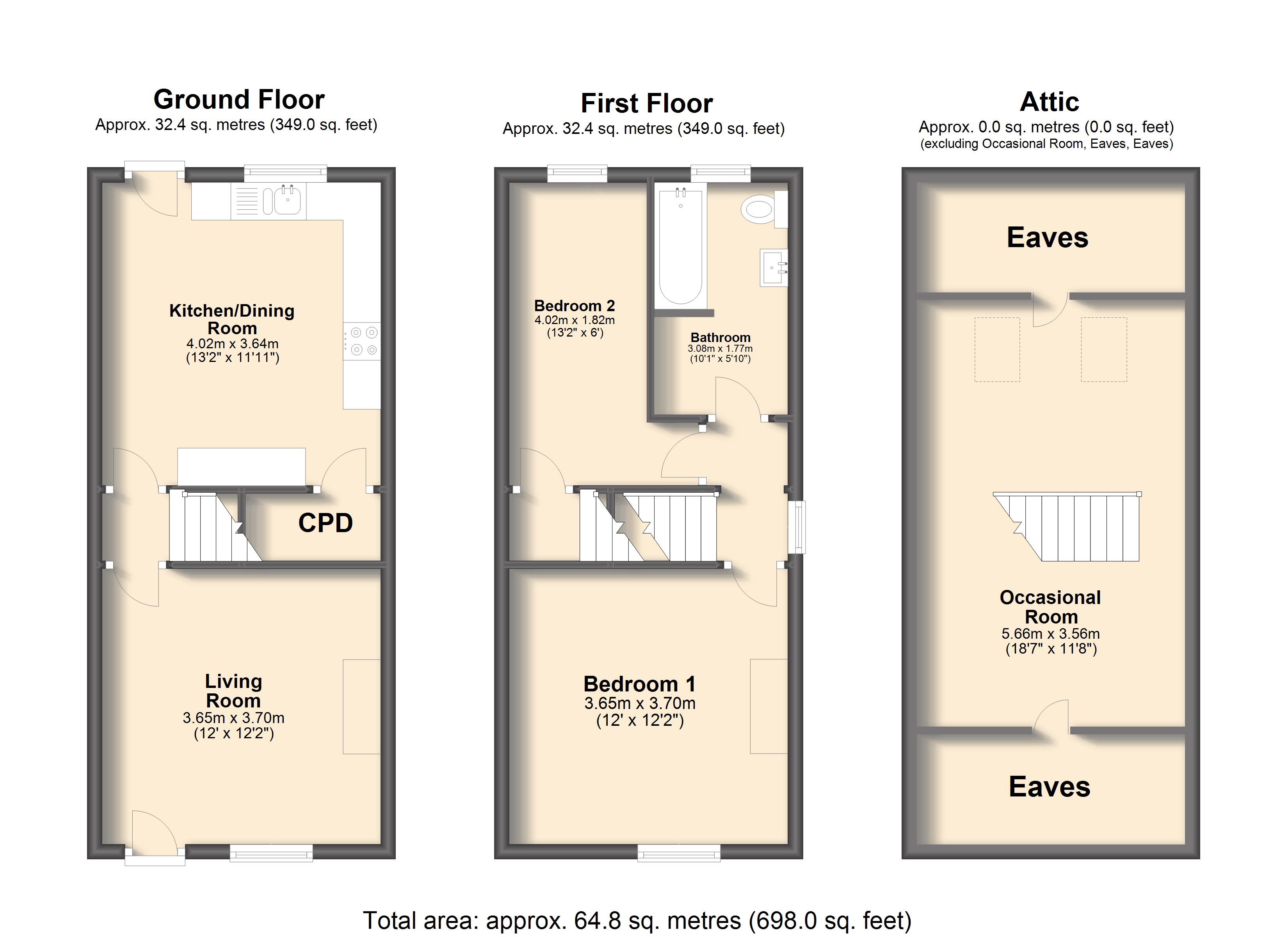 - Approx Sq Feet: 698 sqft