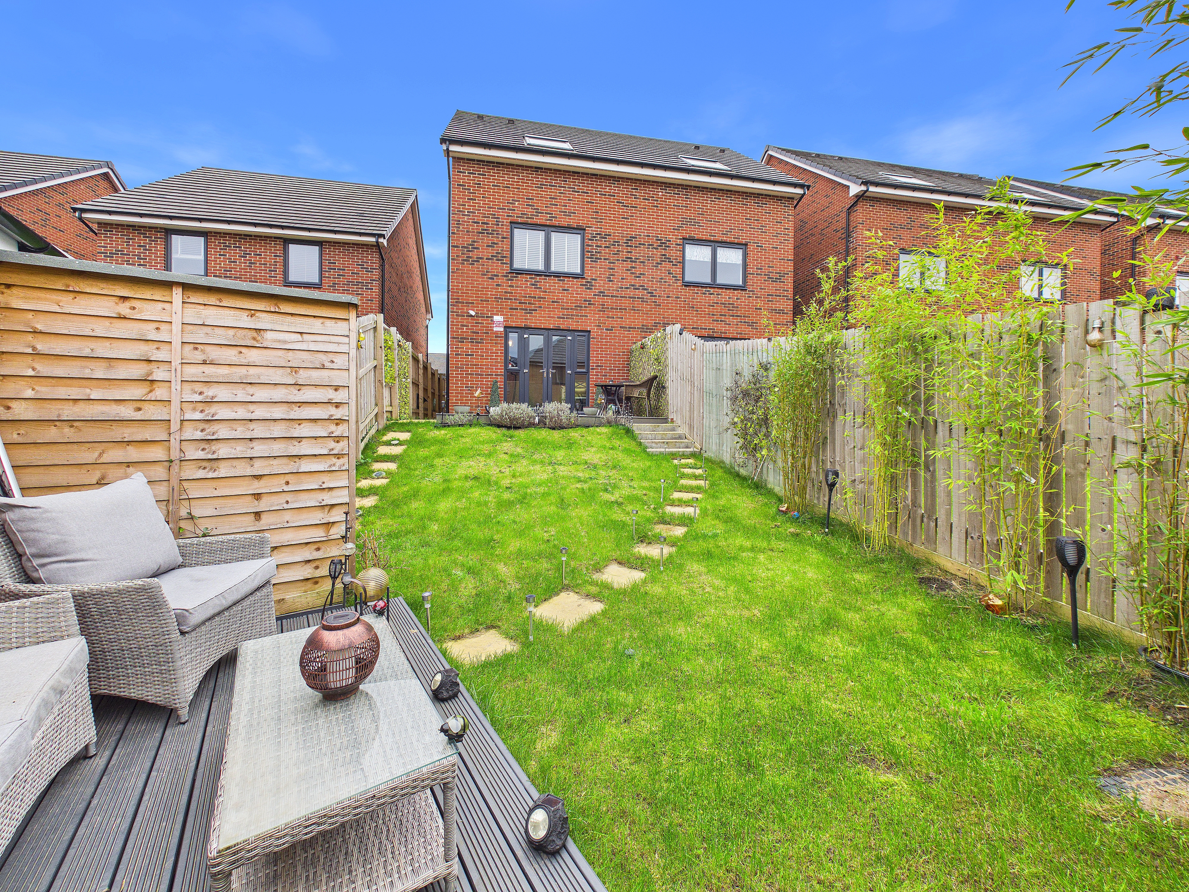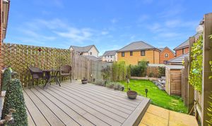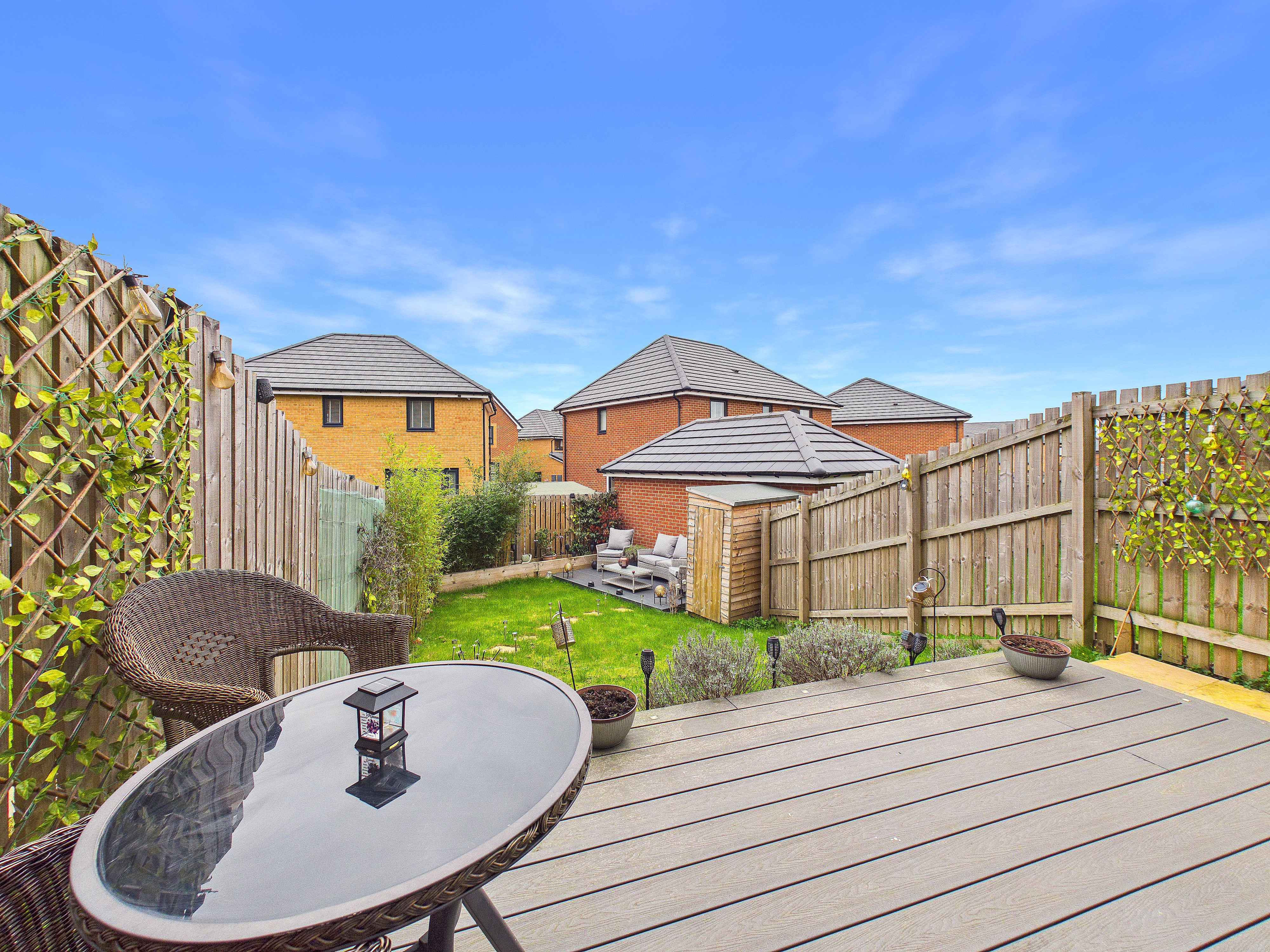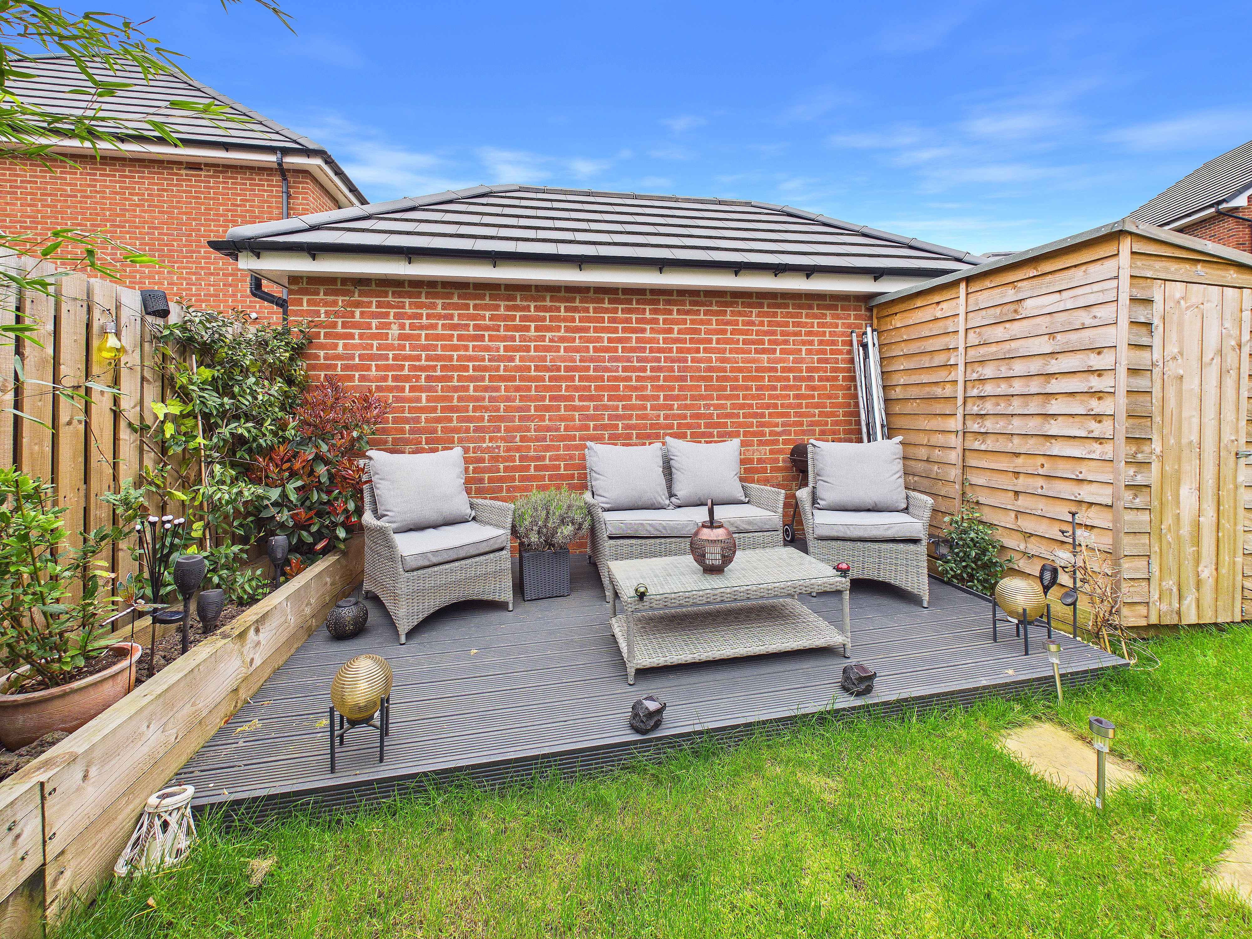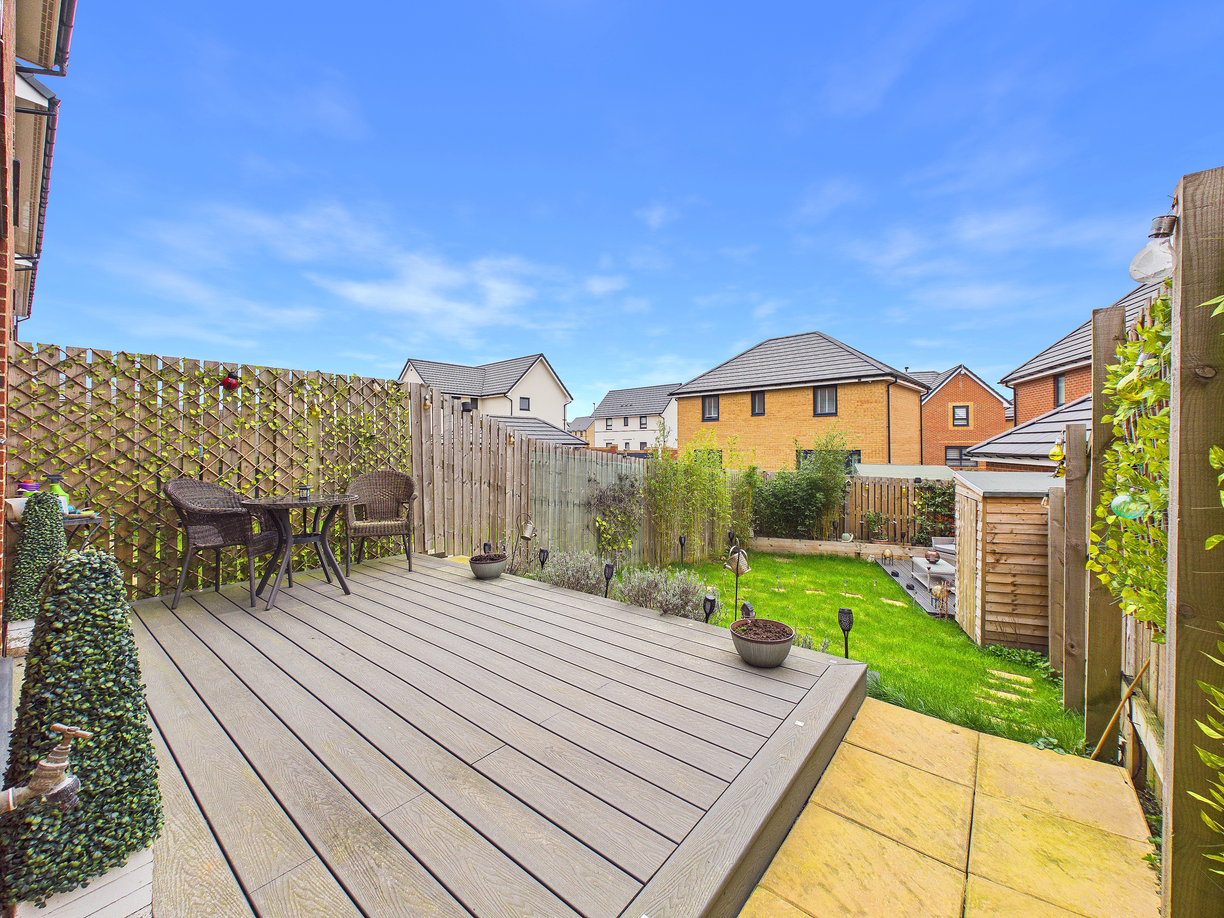Externally, the property continues to impress. To the front, a private driveway provides off-street parking for two vehicles, complemented by a neatly presented front garden. The rear garden has been beautifully landscaped to create a private and enclosed outdoor haven, featuring two areas of composite decking (one complete with integrated lighting), patio stepping stones, a well-maintained lawn, mature shrubs, a shed, and outdoor electric points, perfect for entertaining or relaxing in the warmer months.