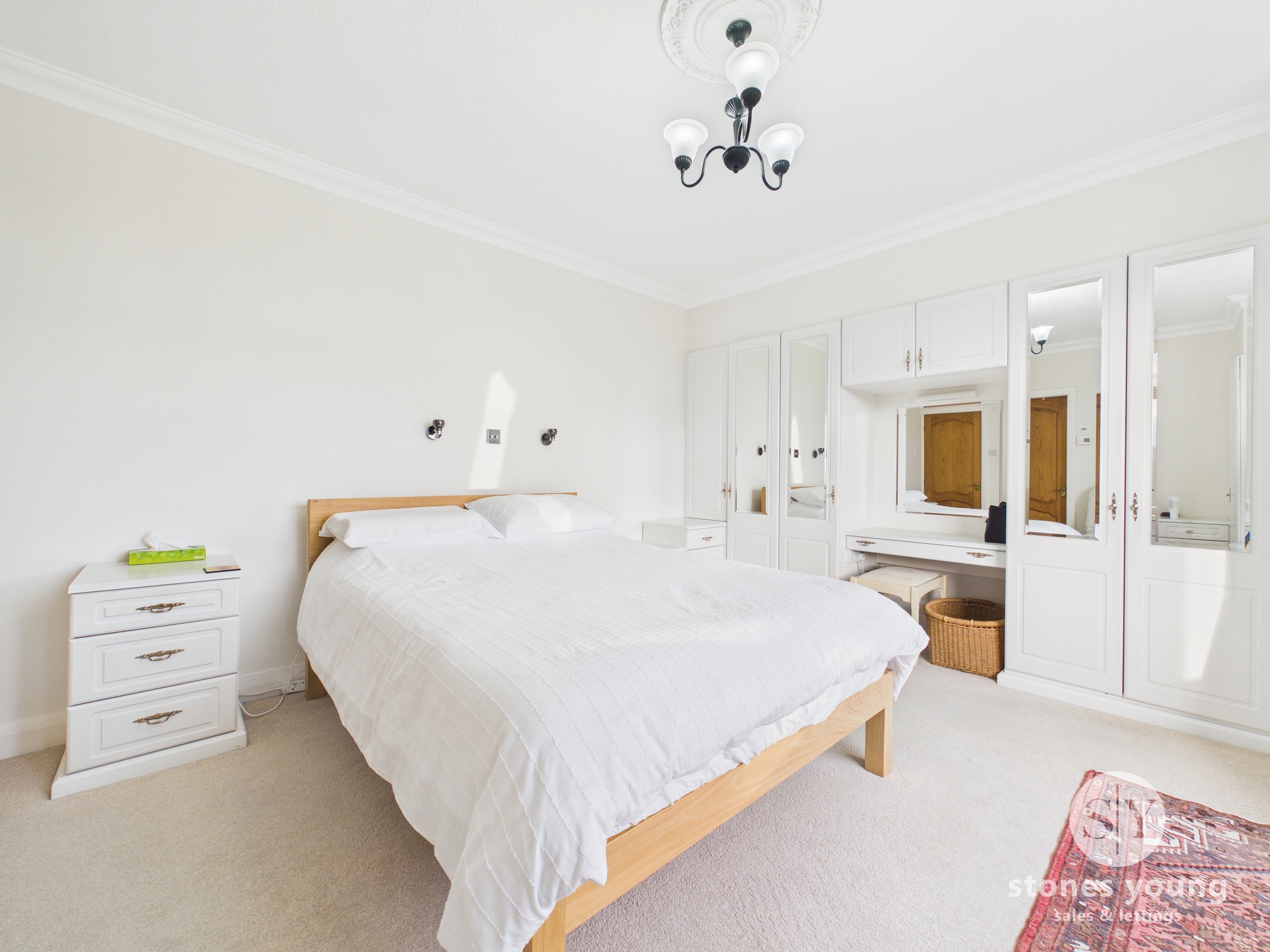 The master bedroom features bespoke fitted wardrobes and a newly installed en-suite bathroom with luxurious underfloor heating, providing a private sanctuary for relaxation. two further well-appointed bedrooms offer flexibility for family living or guests which are serviced by the three piece bathroom.