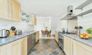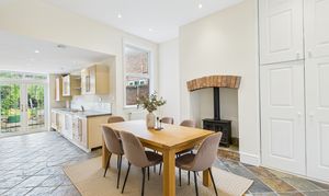 - Open-plan dining room into kitchen that features French door access to the rear garden