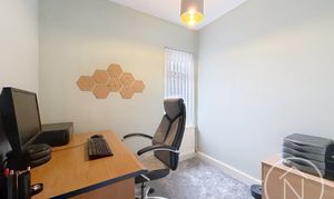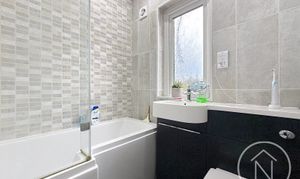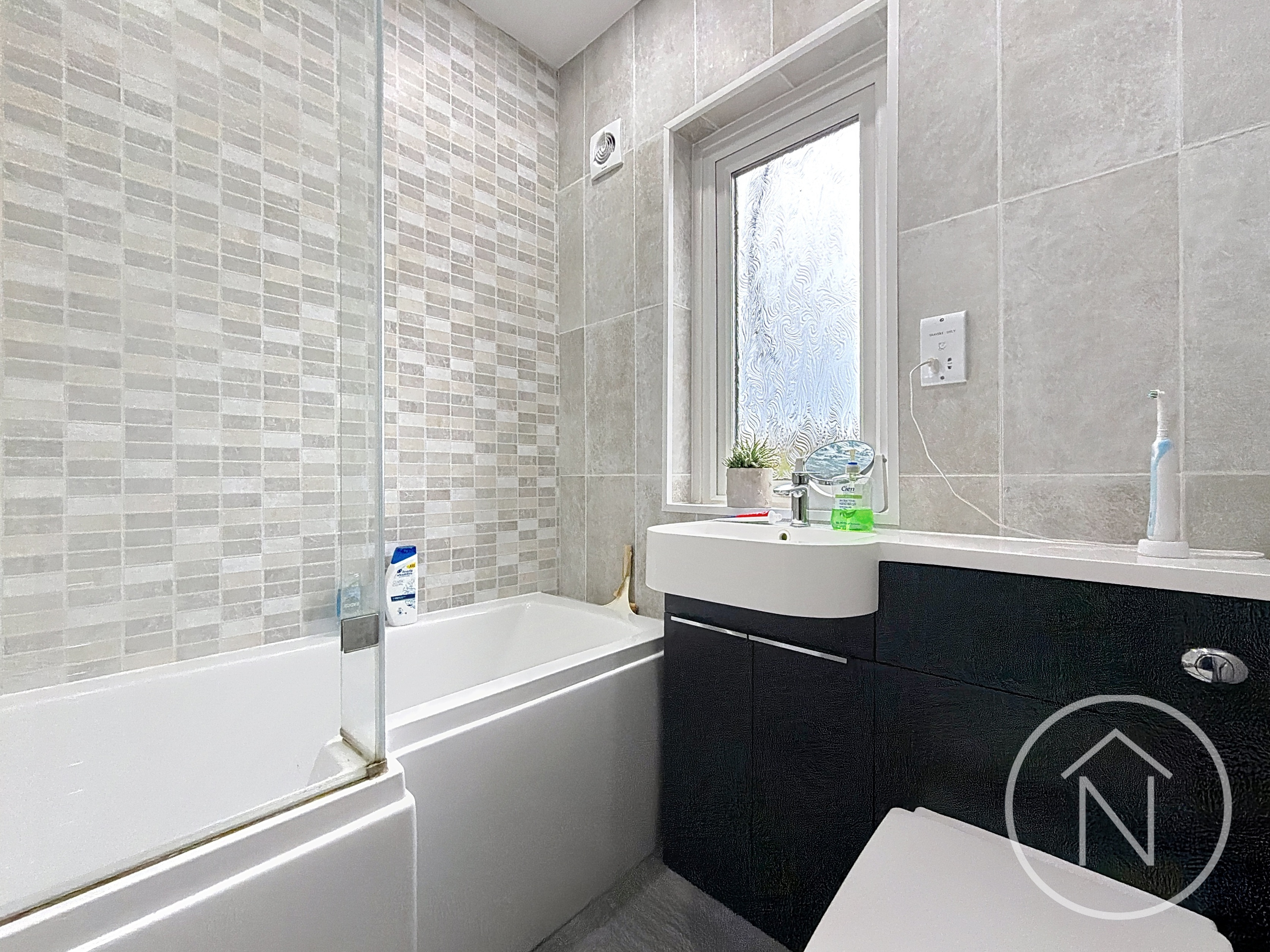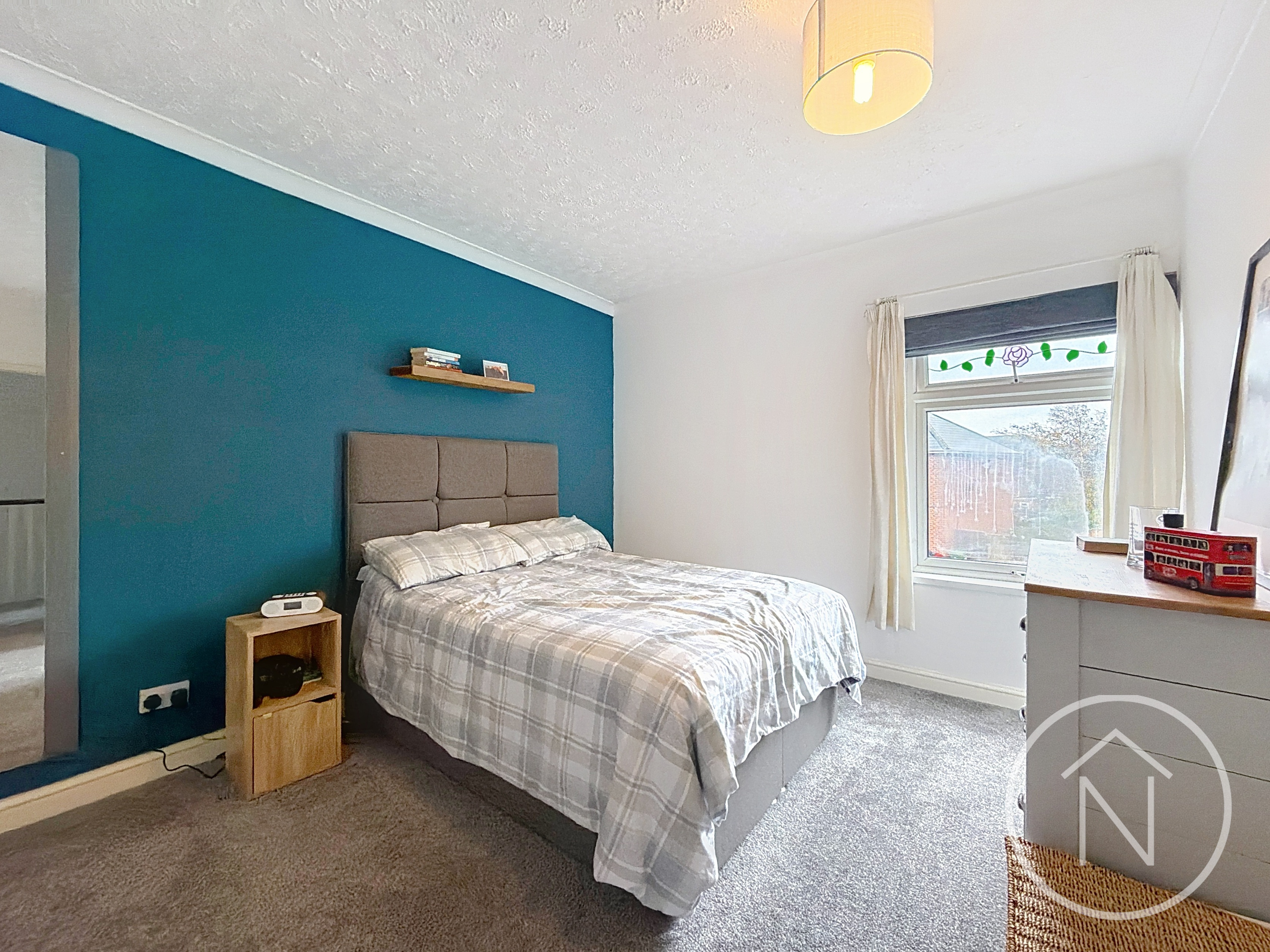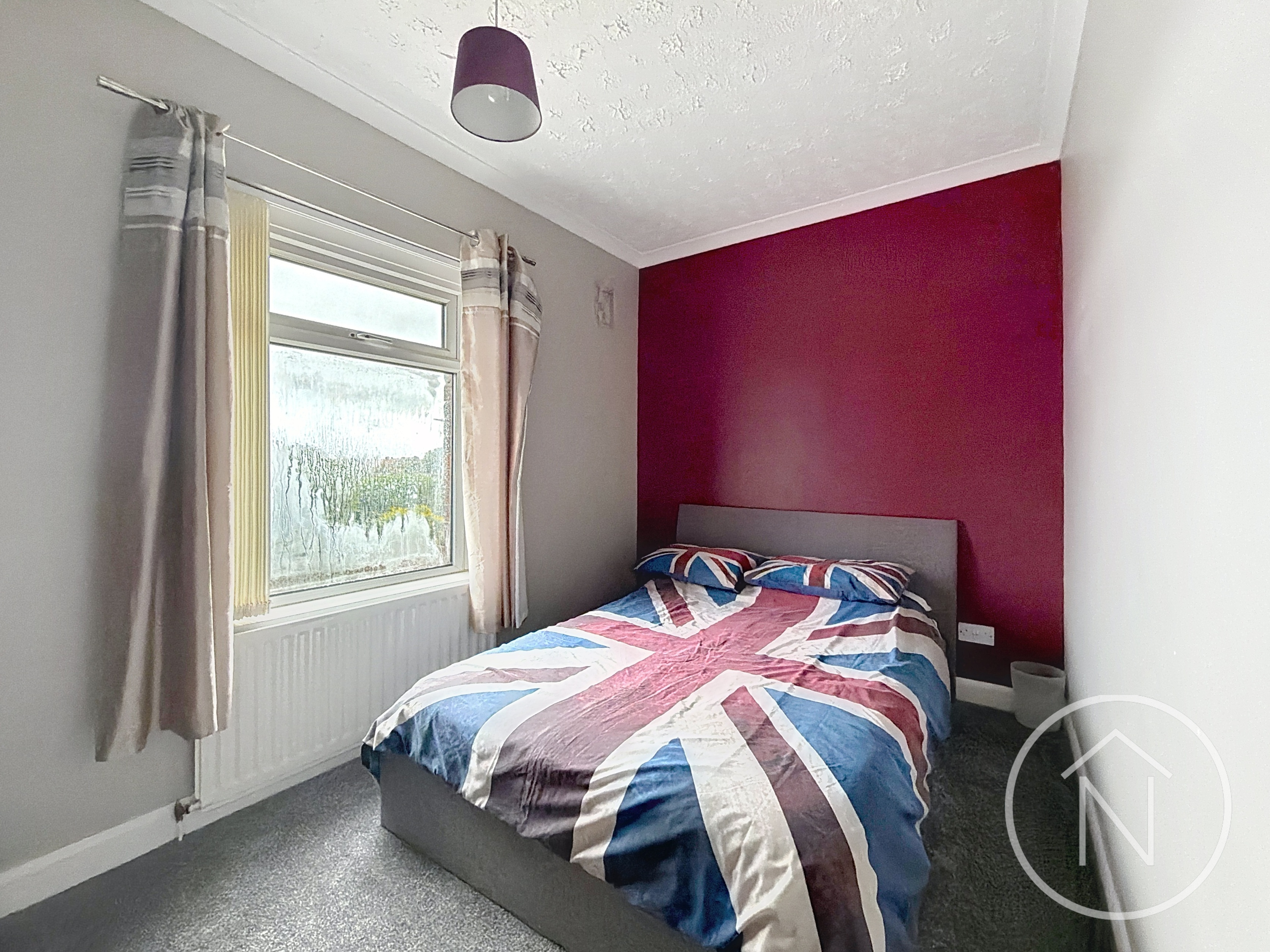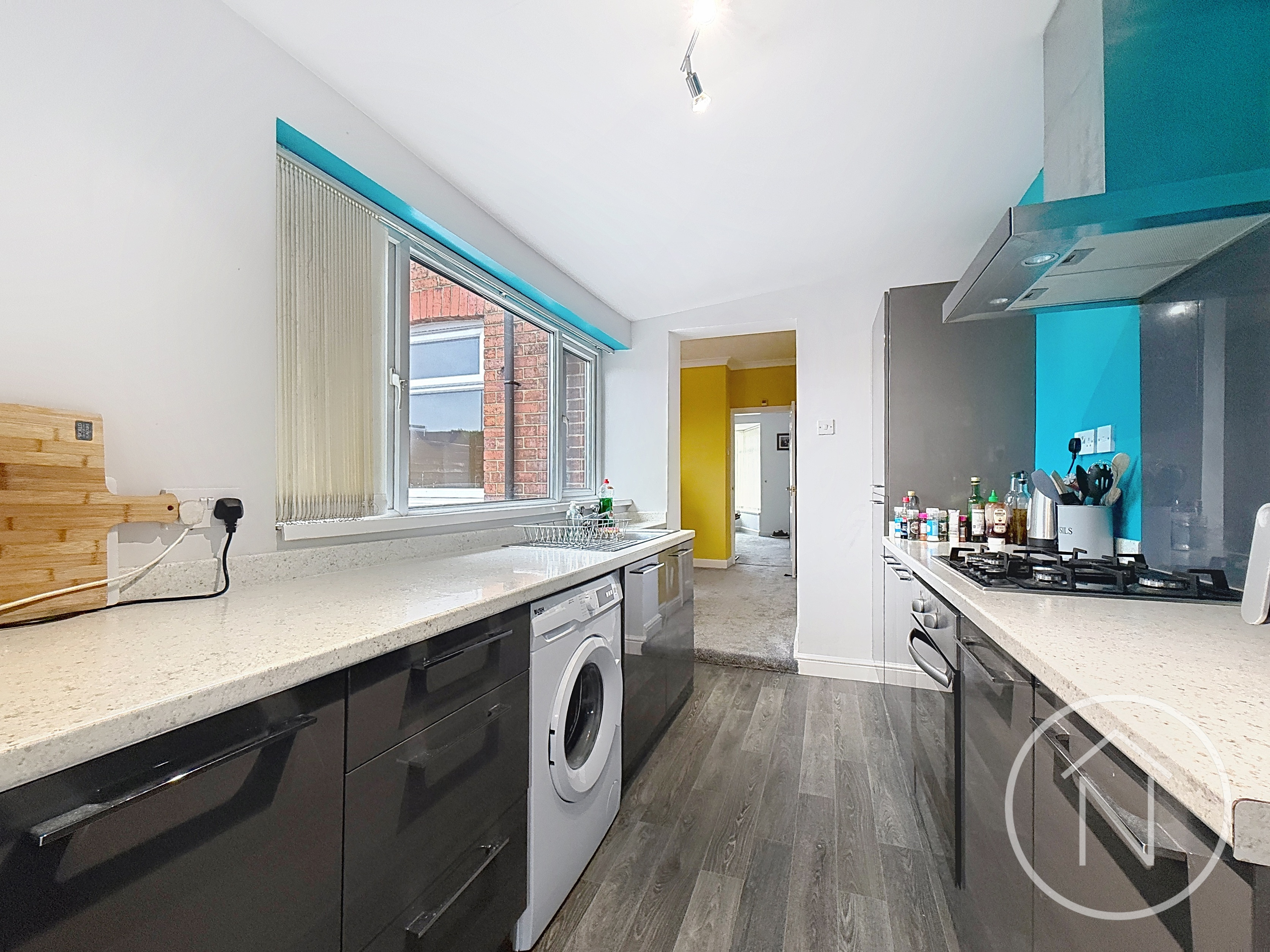 This beautifully presented three-bedroom, one-bathroom mid-terraced house offers a perfect blend of modern style and practical living. The home welcomes you with a bright and spacious living room, complemented by a large bay window that fills the space with natural light. The open plan kitchen and dining area provides a contemporary setting for family meals or entertaining, boasting sleek modern kitchen units and ample countertop space. Vibrant accent walls and modern decor throughout the home create a stylish, inviting atmosphere. A dedicated home office provides an ideal space for remote work or study, benefitting from excellent natural light.