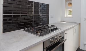 The welcoming reception hall provides access to all apartments. The lounge is particularly impressive in size, light filled and airy, with a feature fireplace creating an inviting focal point. The kitchen is well equipped with a range of wall and floor mounted units, complementary work surfaces, a tiled splashback, and a 4 ring gas hob with oven and grill below. There is ample space for a fridge freezer, plumbing for a washing machine, and direct access to the rear garden.