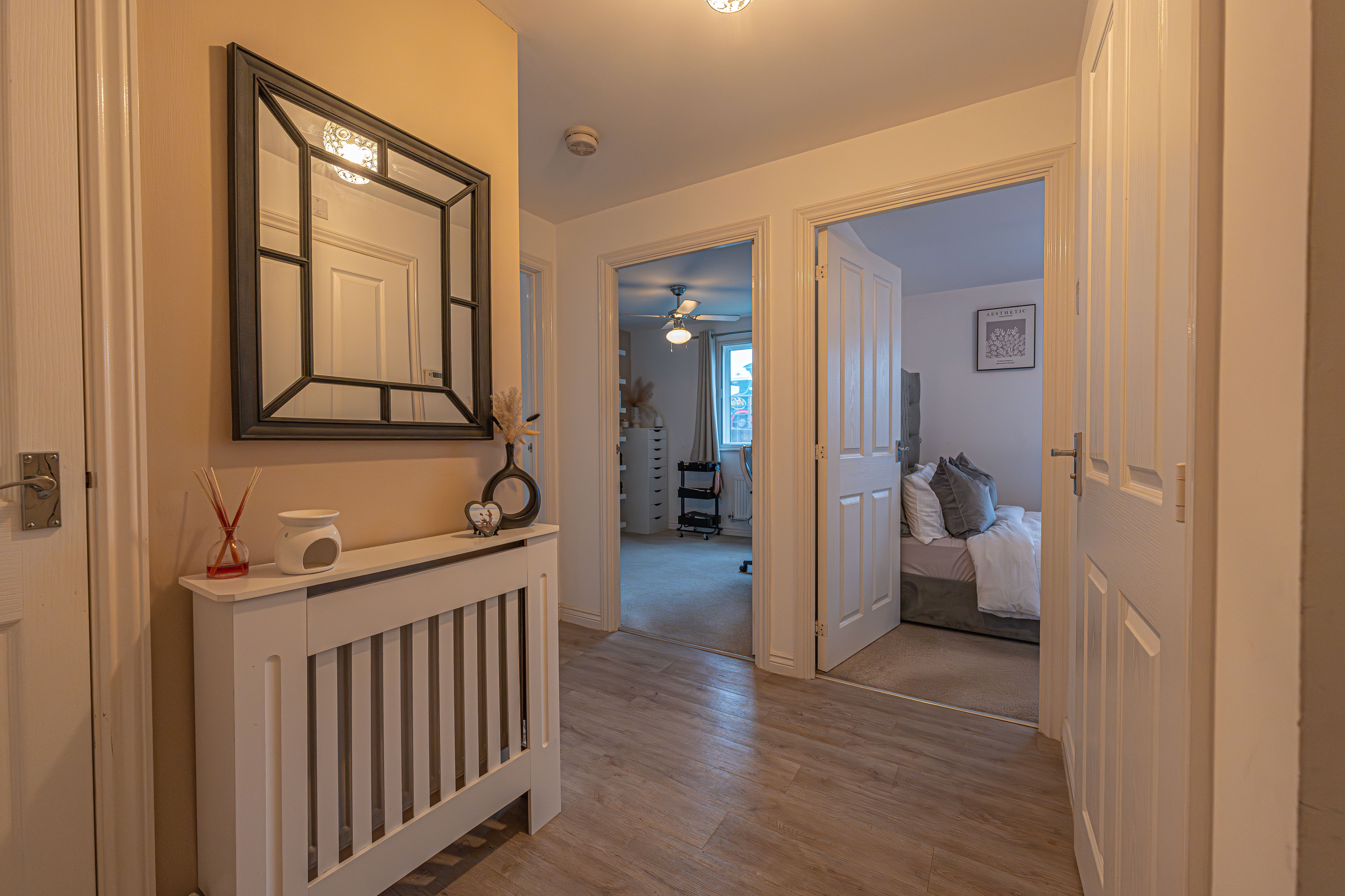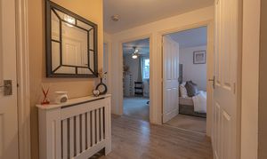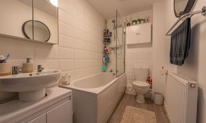 At the property are two generously sized double bedrooms, which share the family bathroom found from the hallway, featuring a toilet, bath suite and an overhead shower. The property also comes with an airing cupboard and a utility closet accessible from the entry hallway, while outside there is a single allocated parking space, as well as further on-road parking with communal visitor spaces too.