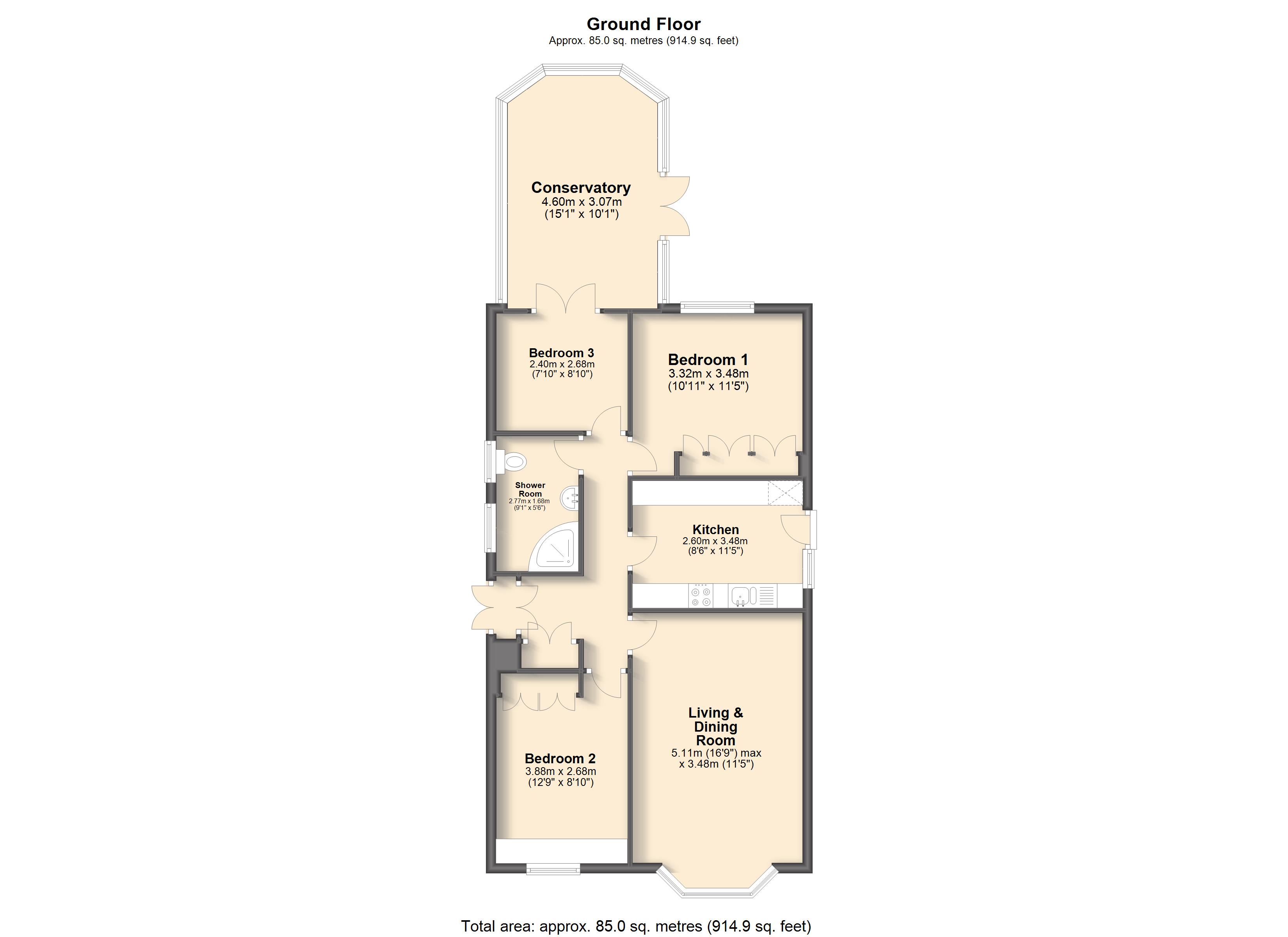 - Approx Sq Feet: 914 sqft