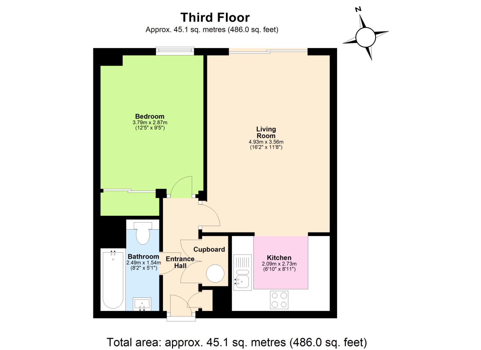 - Approx Sq Feet: 485 sqft