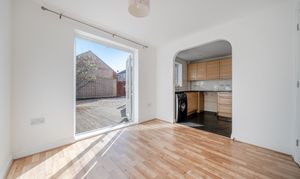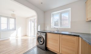 The ground floor comprises an entrance hall leading to a spacious 17’4 dual-aspect sitting room, filled with natural light. There is also a useful ground floor cloakroom and to the rear, an open-plan kitchen/dining room with French doors opening onto the south-east facing garden.