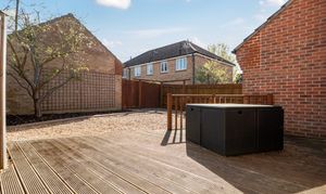 Externally, the landscaped rear garden enjoys a south-east facing aspect and features a variety of seating areas, ideal for outdoor dining and relaxation, along with side access and a personal door into the attached garage. To the front, there is driveway parking and access to the garage via an up-and-over door.
